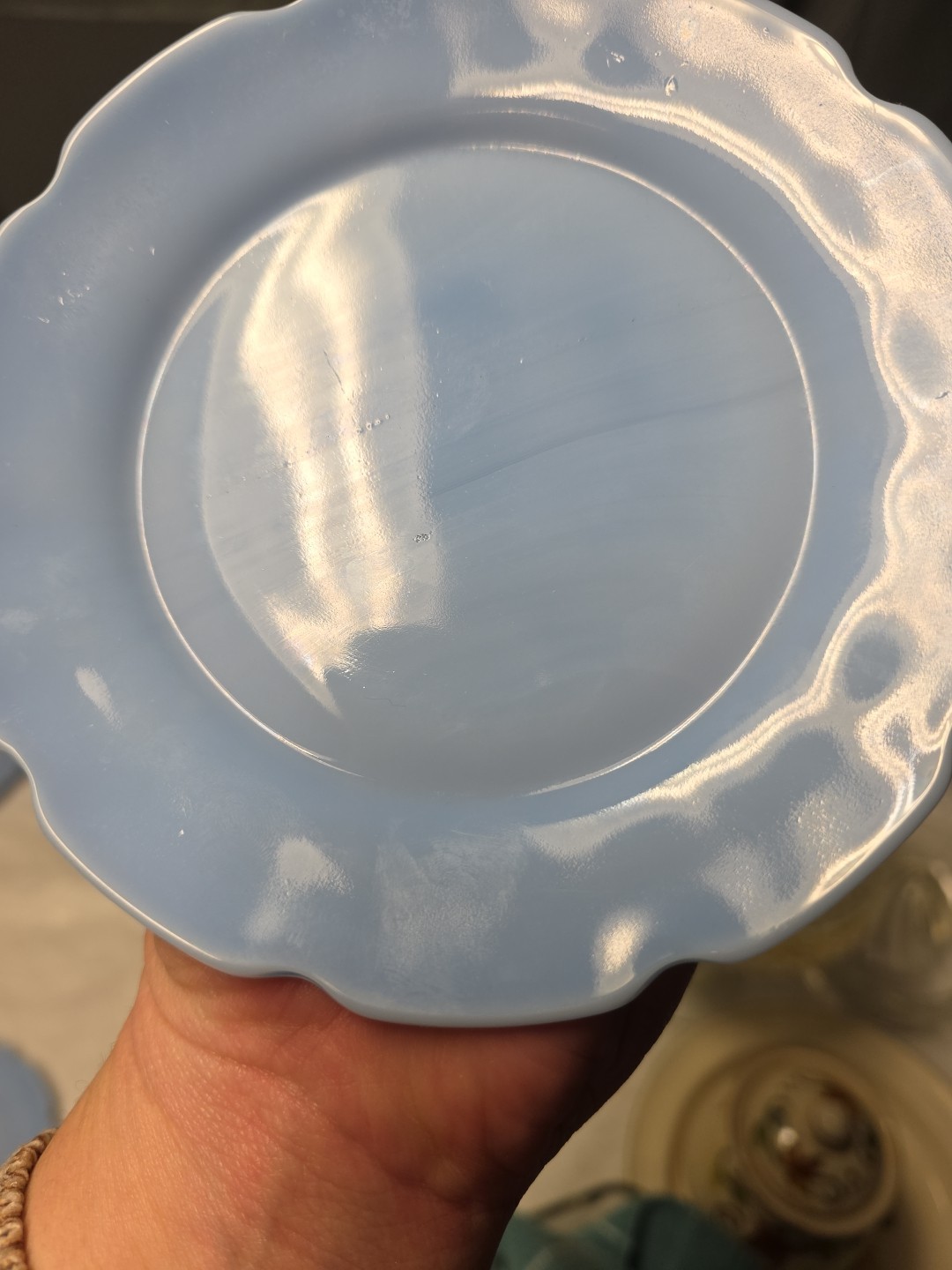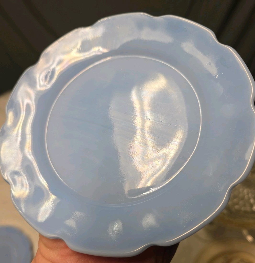 Jeannette Cherry Blossom Delphite Depression Glass, 2 Child Plates for Tea Set