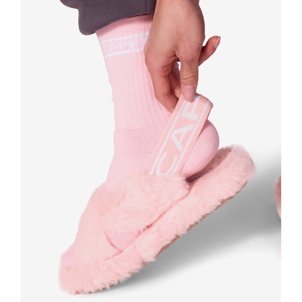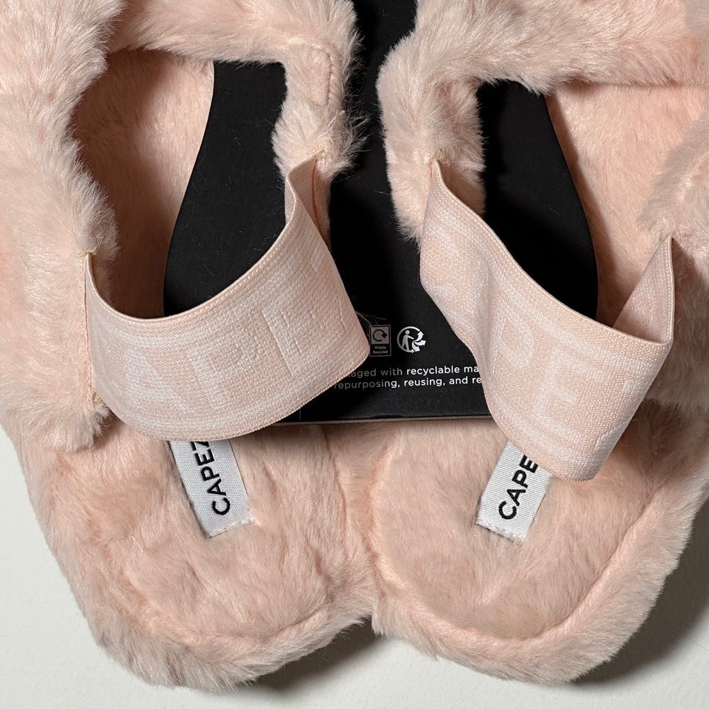 как выглядит Capezio Pink Faux Fur Cross Strap Slippers with Logo Elastic Back Strap Size M 8 фото