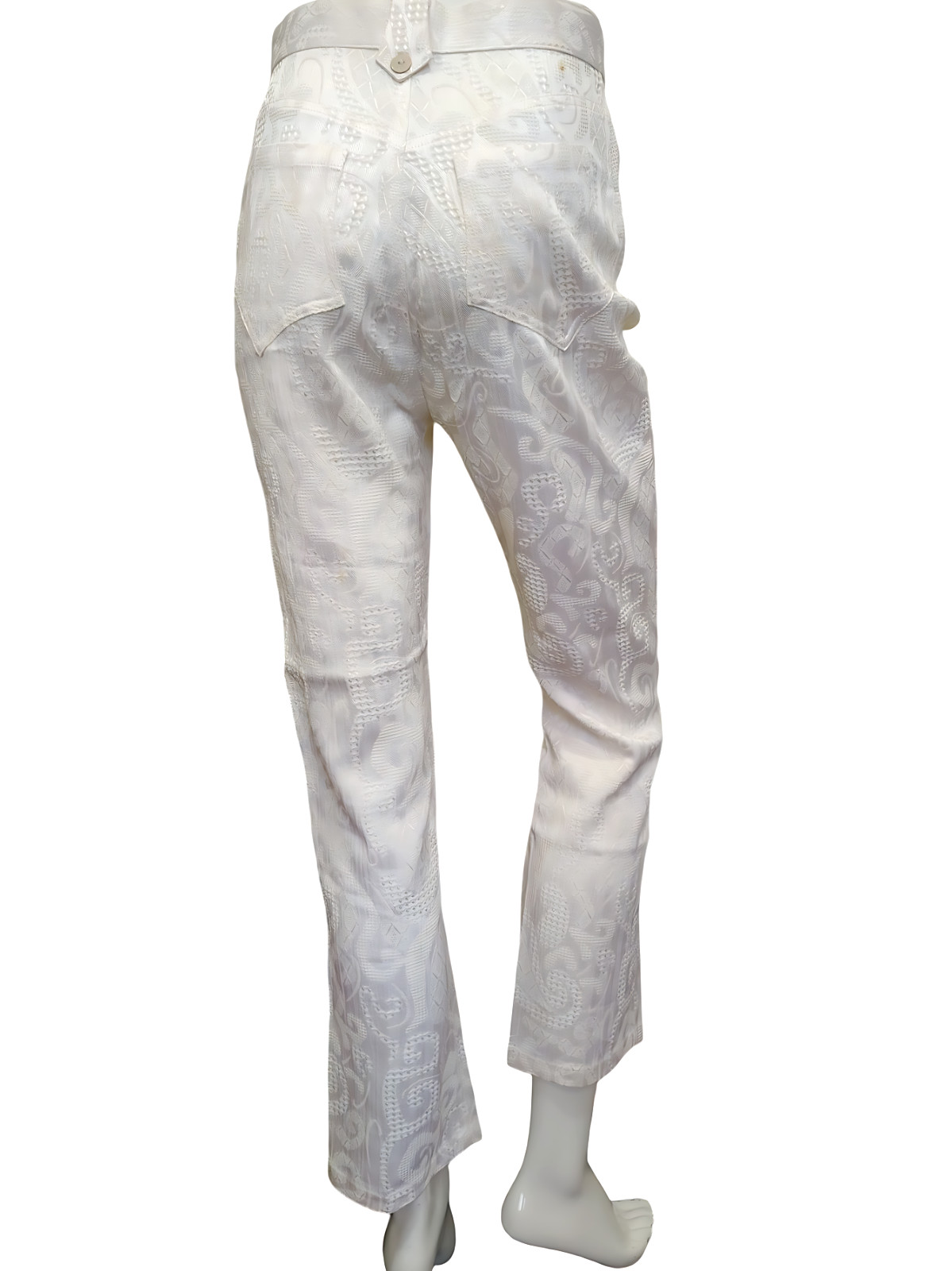 Auth CHRISTIAN LACROIX Floral Cropped Trousers White Pink Luxury Paris Designer