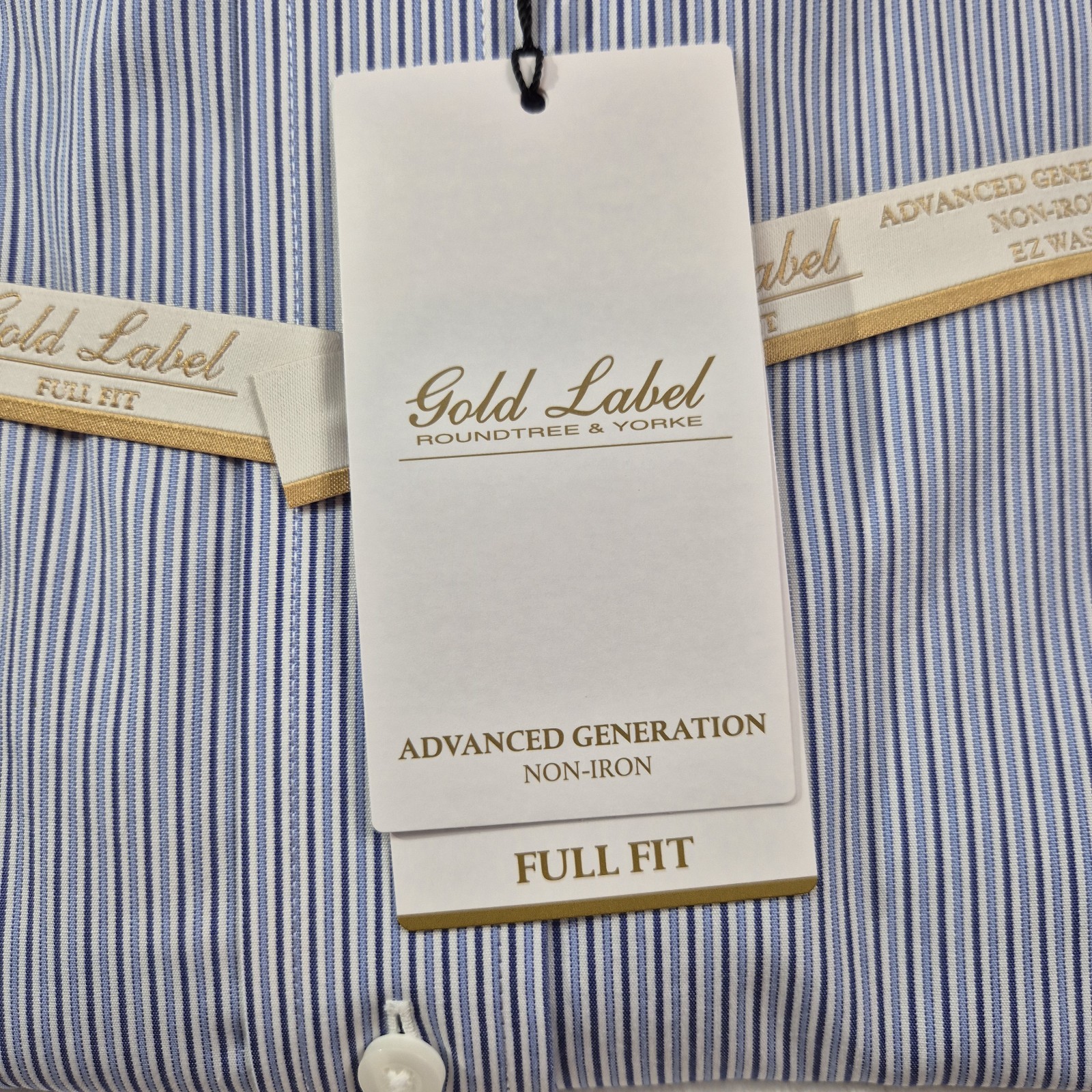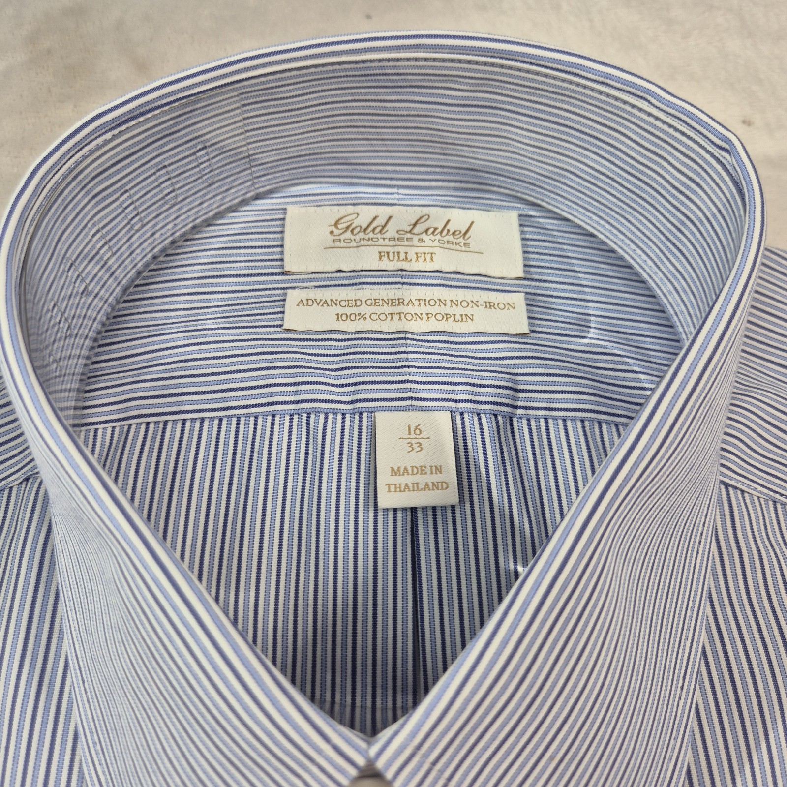 Roundtree Yorke Gold Label Men's Shirt Size 16 33 Blue Striped Fullfit Poplin 61