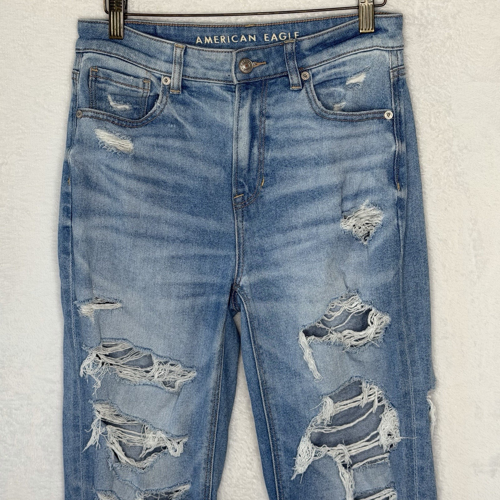 как выглядит American Eagle Jeans Womens Size 4 Distressed Stretch Ripped Mom Jean фото