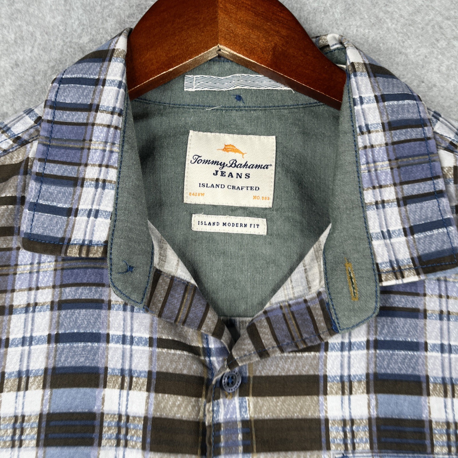 Tommy Bahama Shirt Medium Colorful Plaid Pocket Button Up Long Sleeve Mens