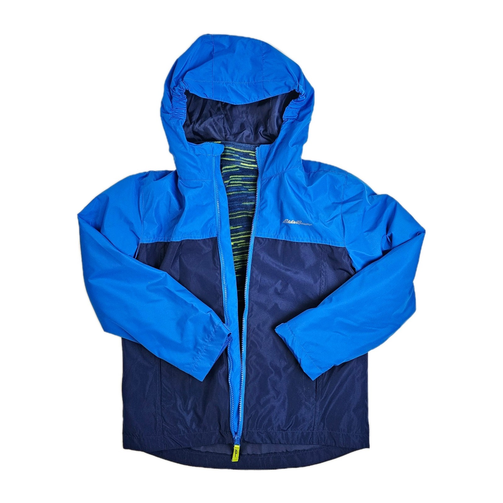 Eddie Bauer Boys 3-in-1 Jacket with Hood, Size M 10/12 Blue, Removable Fleece