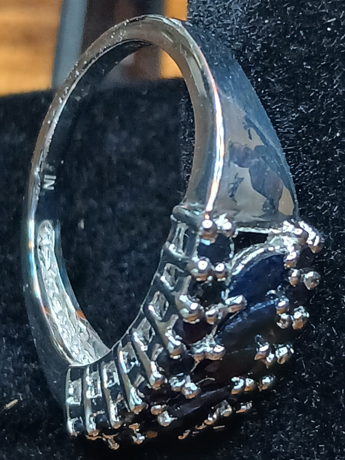 как выглядит Womens Sterling Silver Black Sapphire Marquise Cut Designer Ring фото
