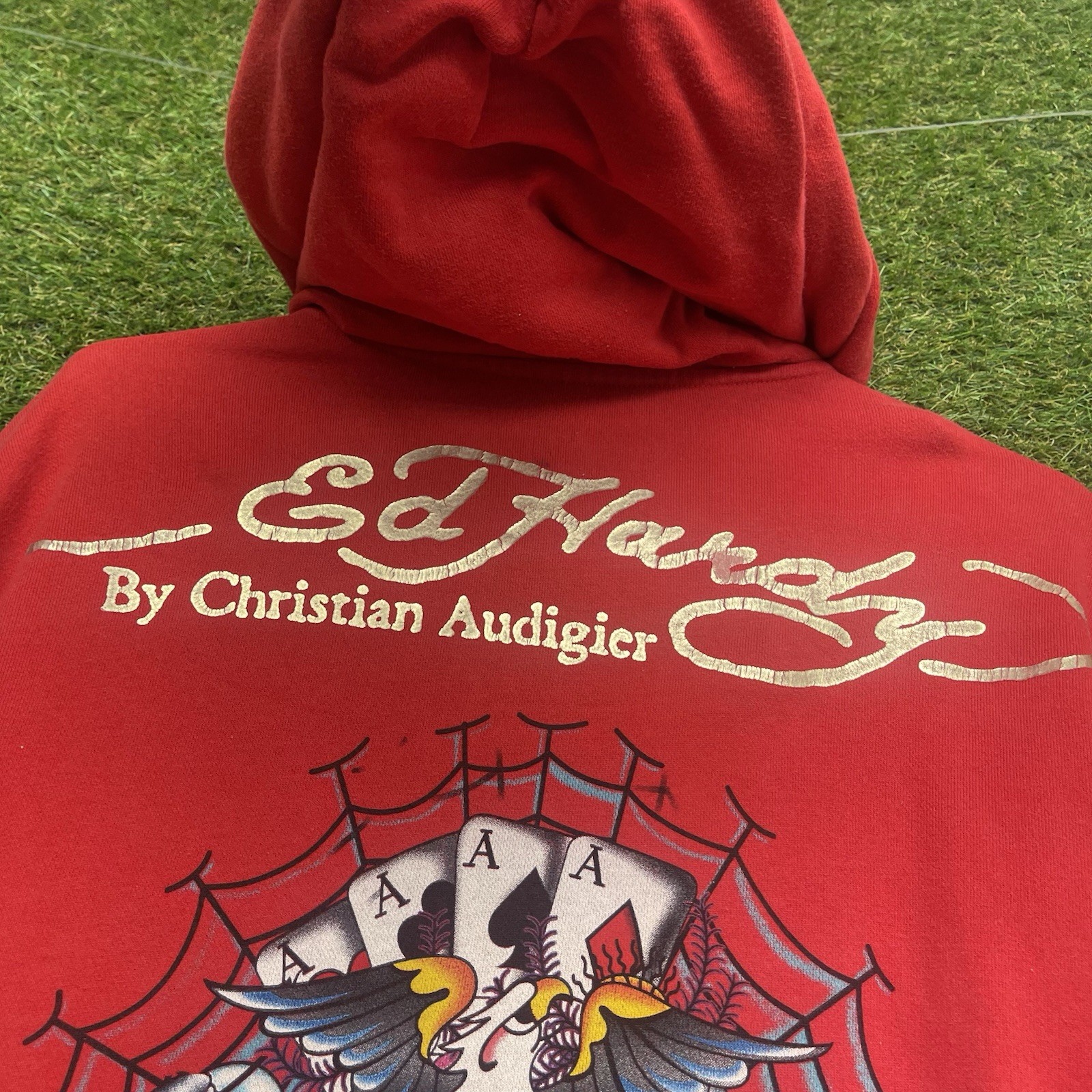 как выглядит Vintage Ed Hardy Hoodie Womens XL Red Skull Grunge Tiger Rose Zip Up y2k фото