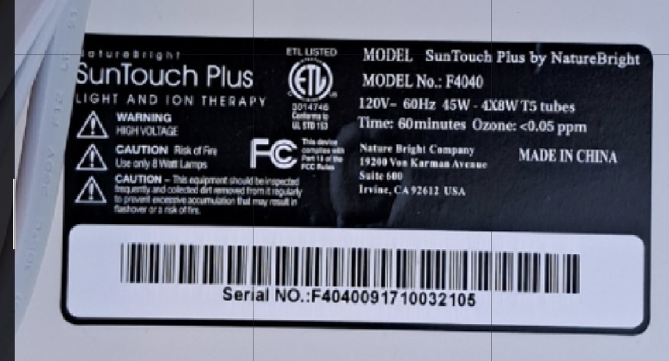 Pre Owned NatureBright SunTouch Plus Light and Ion Therapy Lamp