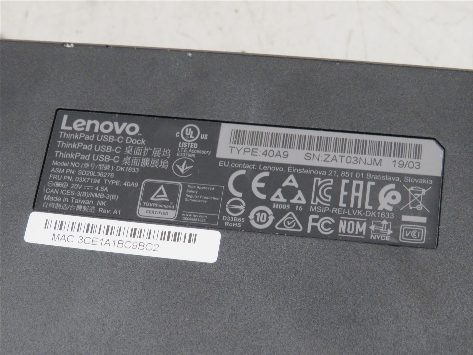 MPN: 03X7194, 40A9, DK1633, Lenovo ThinkPad USB-C Dock
