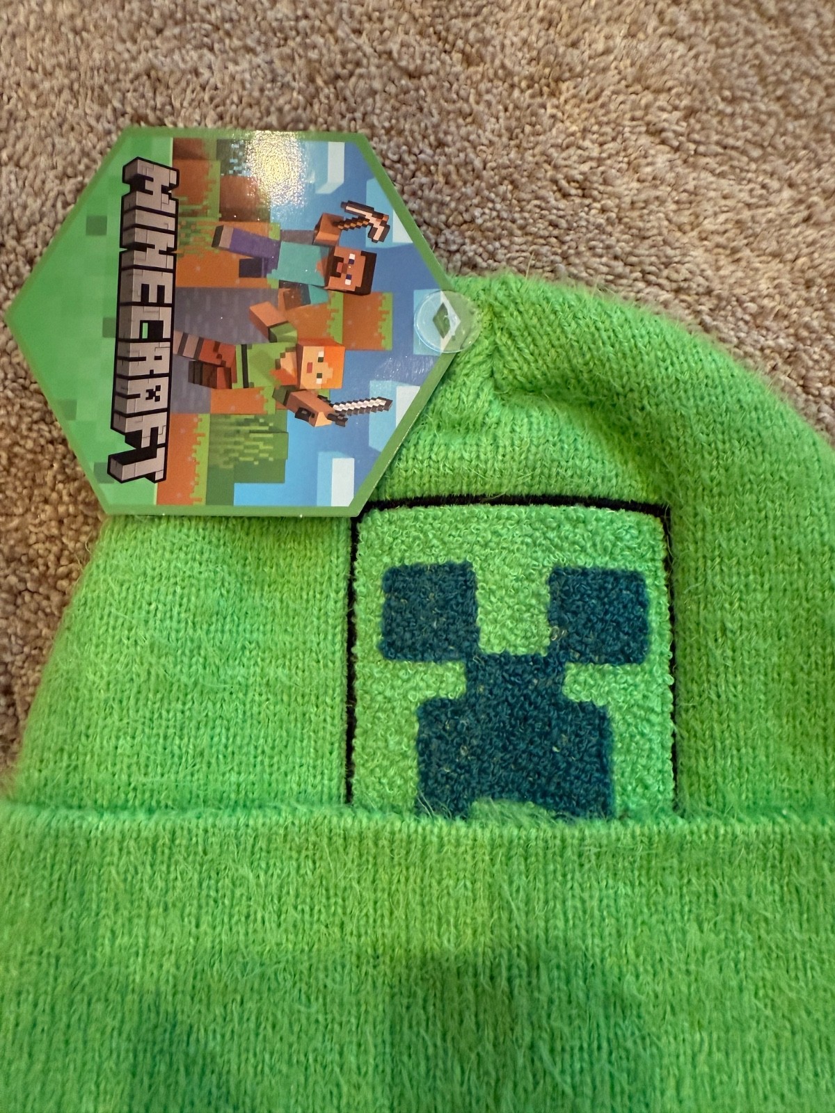 Minecraft Knit Chenille Green Creeper Beanie Hat NWT Gamer Gift