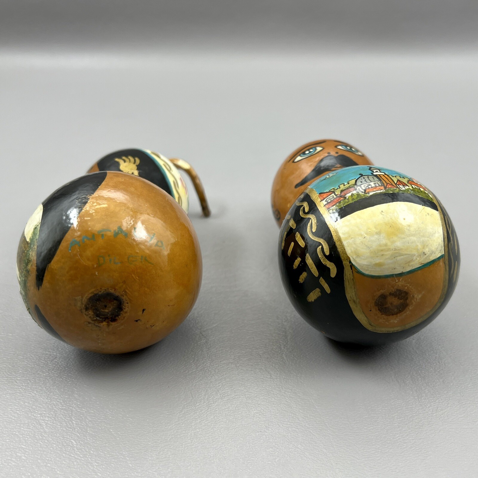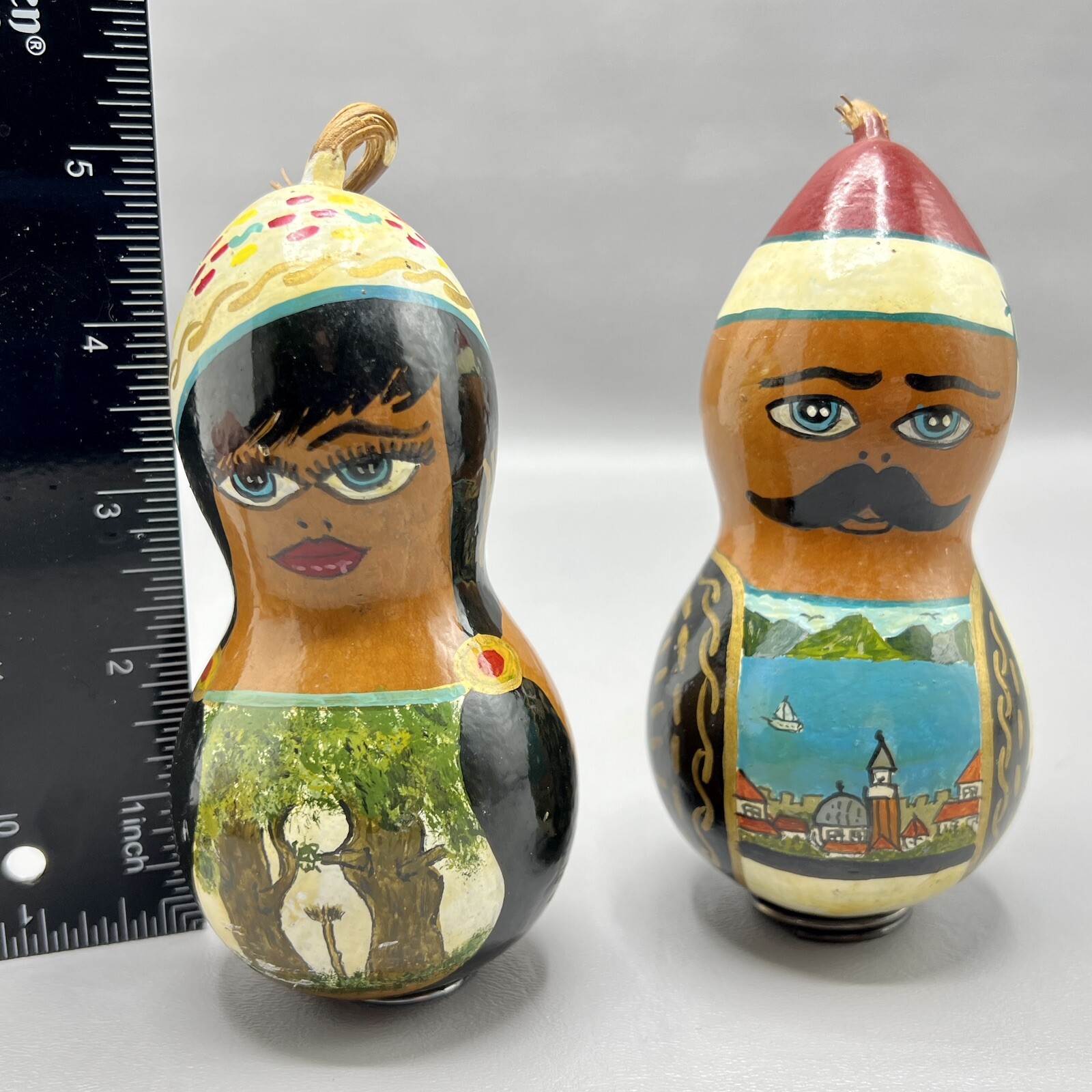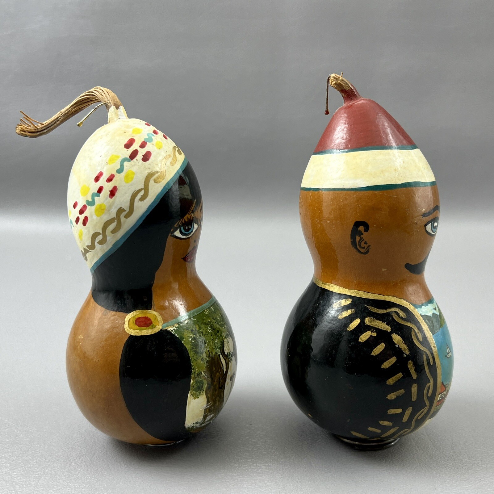 Vintage Hand Painted Folk Art Gourds Male Female Man Woman Signed