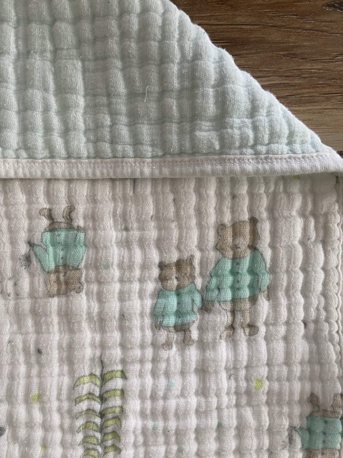 Aden Anais Cotton Muslin Dream Swaddle Blanket Reversible Bears White Gray Green