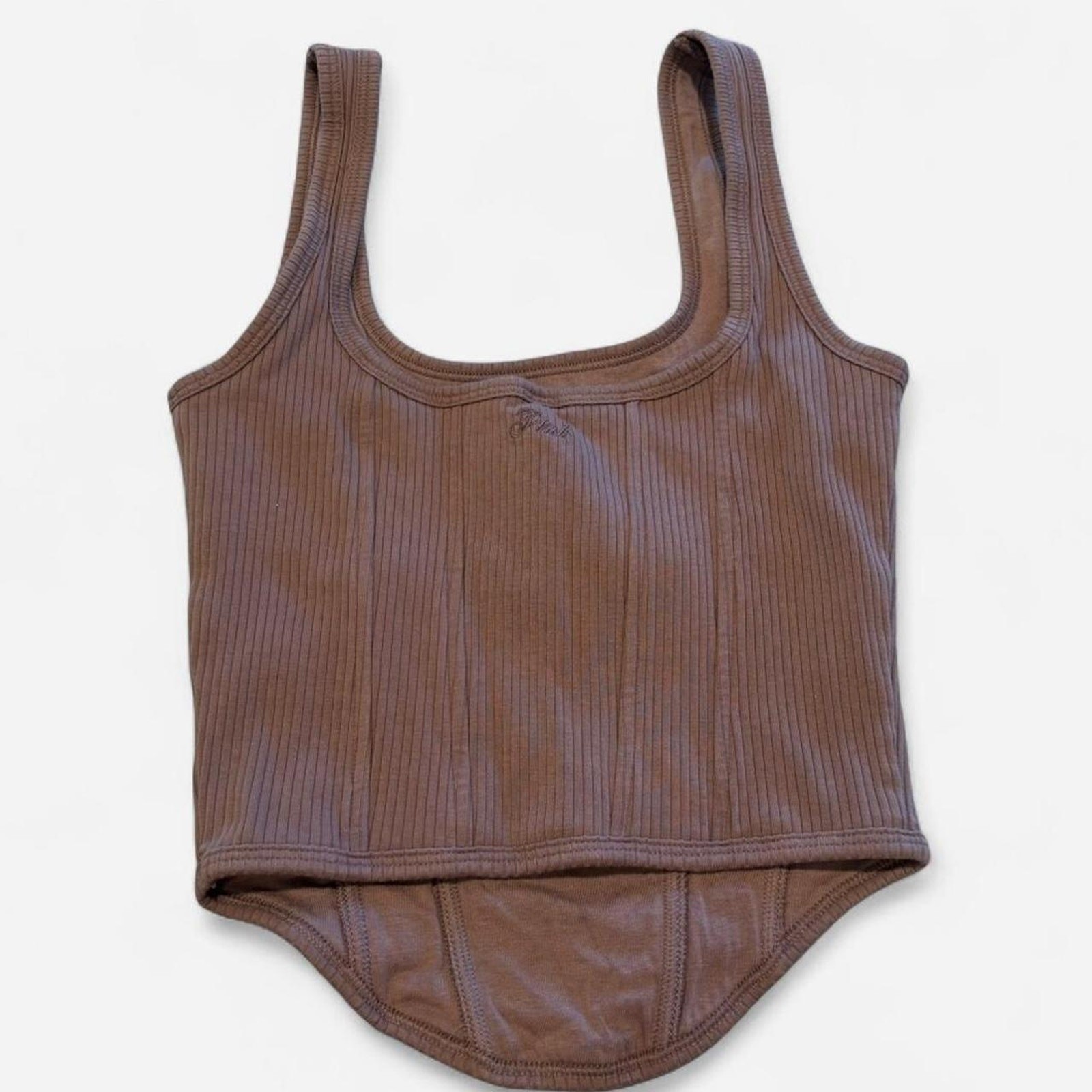 как выглядит PINK by Victorias Secret Ribbed Corset Tank Top in Taupe - Size S фото