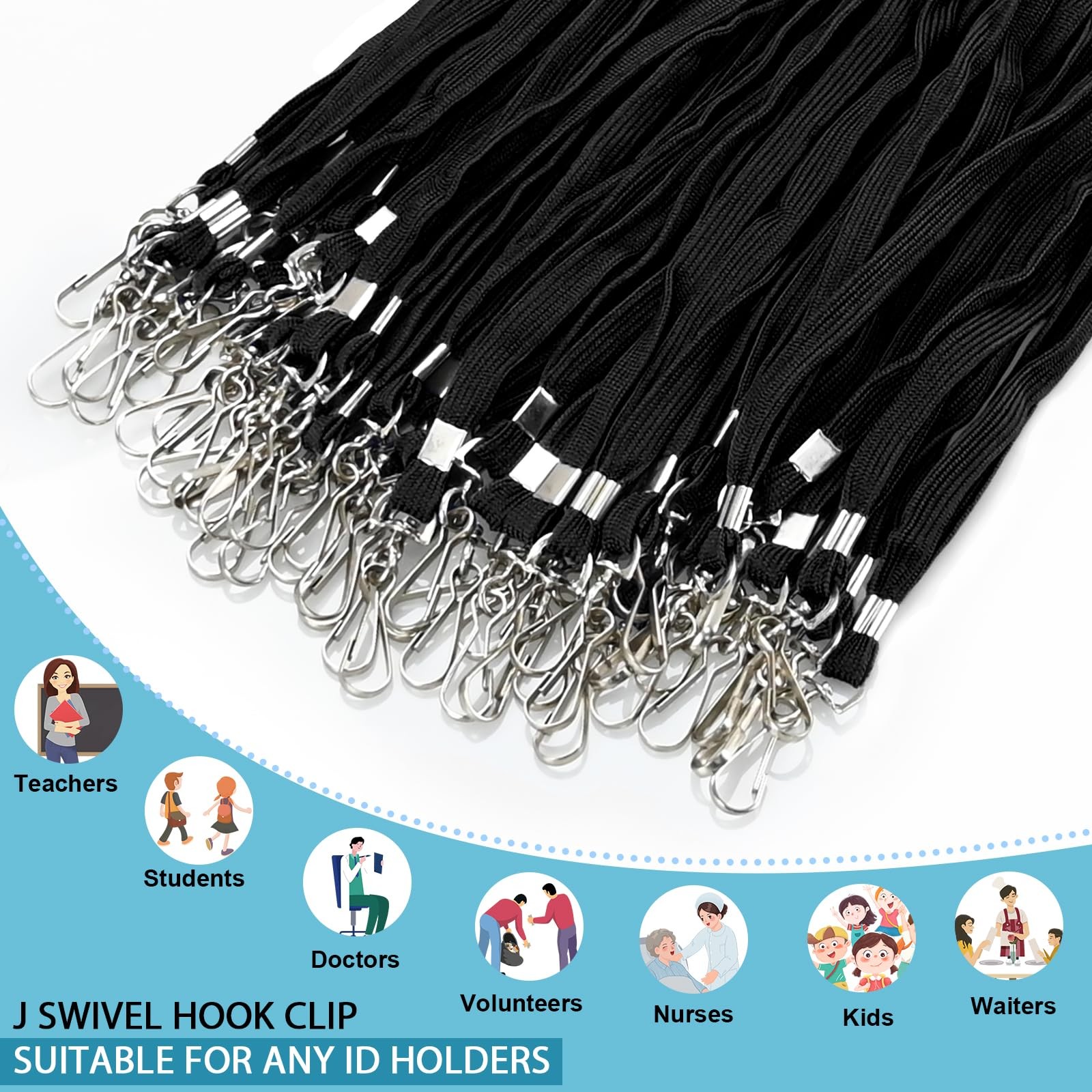 50 Pcs Badge Lanyards Flat Lanyards for ID Badges Bulk lanyard with Swivel J