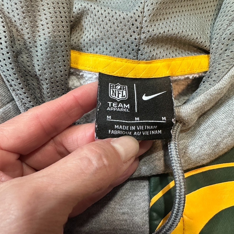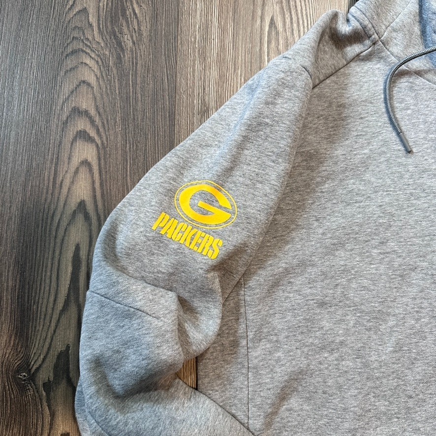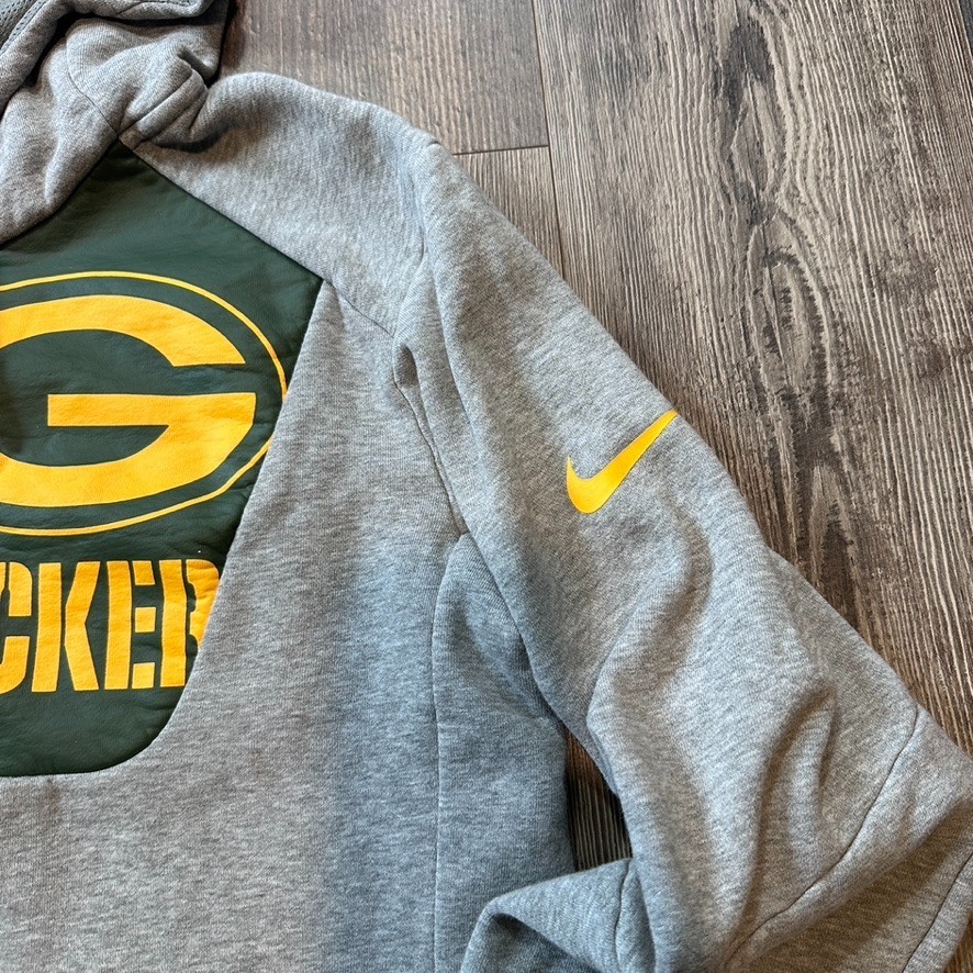 Nike Green Bay Packers Hoodie Medium Gray Fly Fleece NFL Pullover Chest Pocket