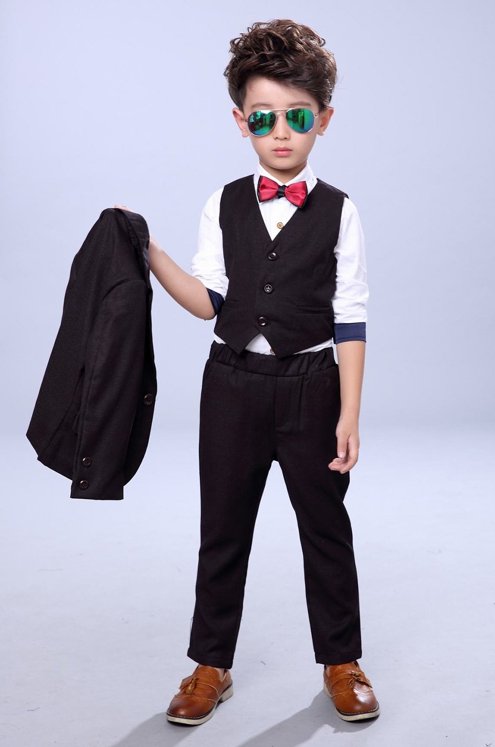 как выглядит Fengchengjize Boys 3Pcs Modern Fit Suit Solid Dress Suit Jacket Vest Pants фото