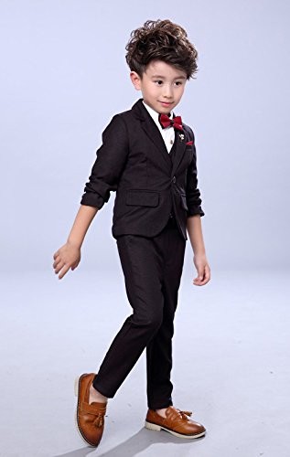 Fengchengjize Boys 3Pcs Modern Fit Suit Solid Dress Suit Jacket Vest Pants