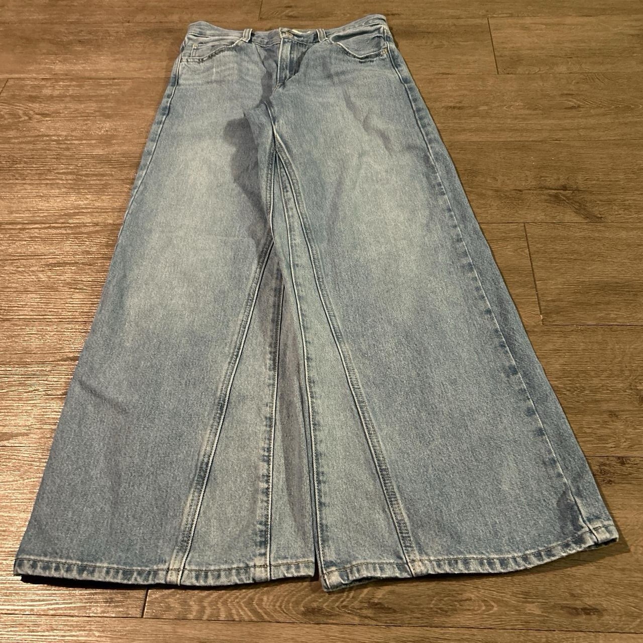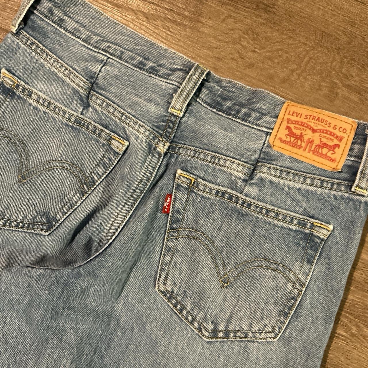как выглядит Y2K women s Levi s 94 baggy wide leg jnco style raver jeans medium wash 26x31 фото
