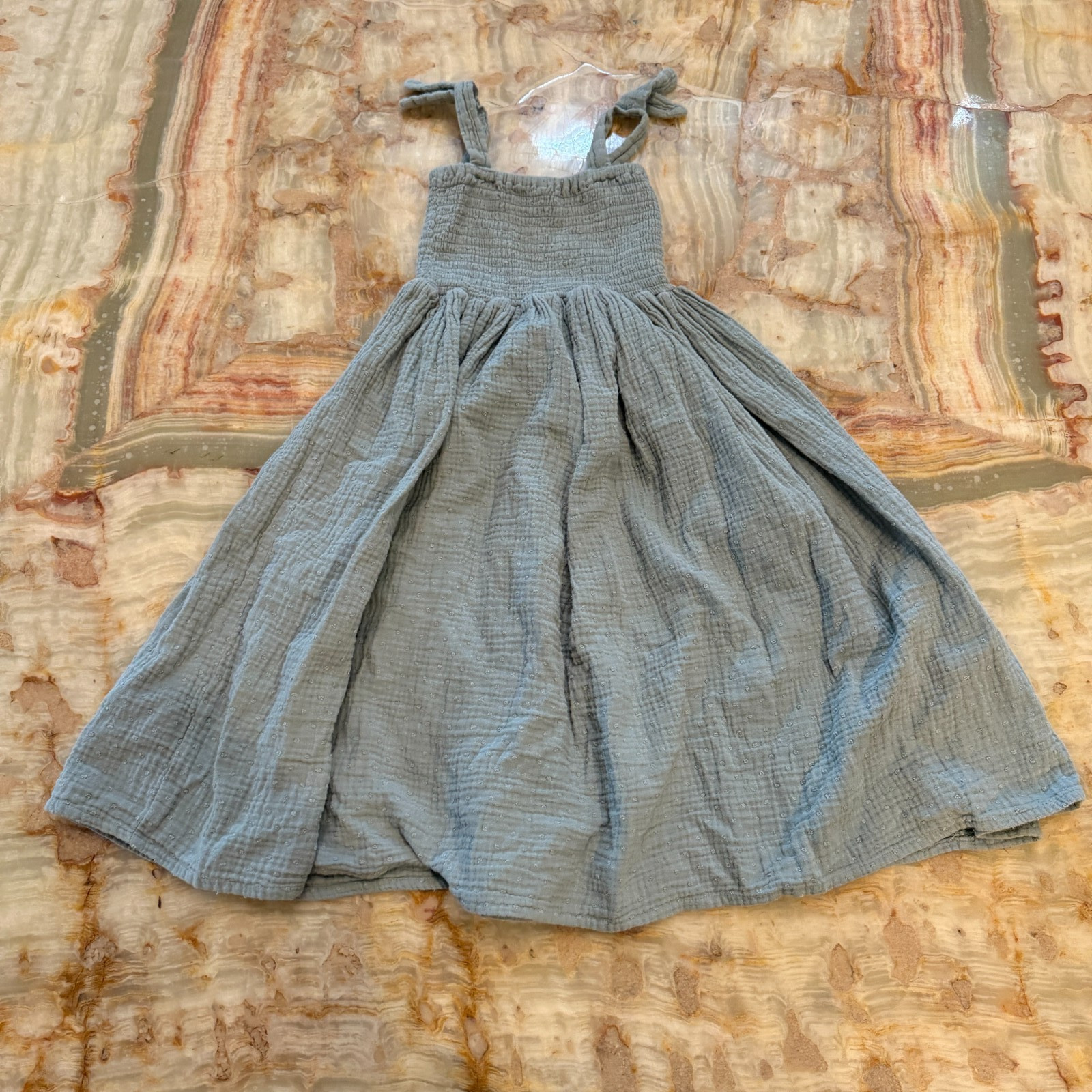Rylee Cru Girls Aqua Ivy Fit Flare Dress Gray Smocked Sleeveless Size 4-5Y