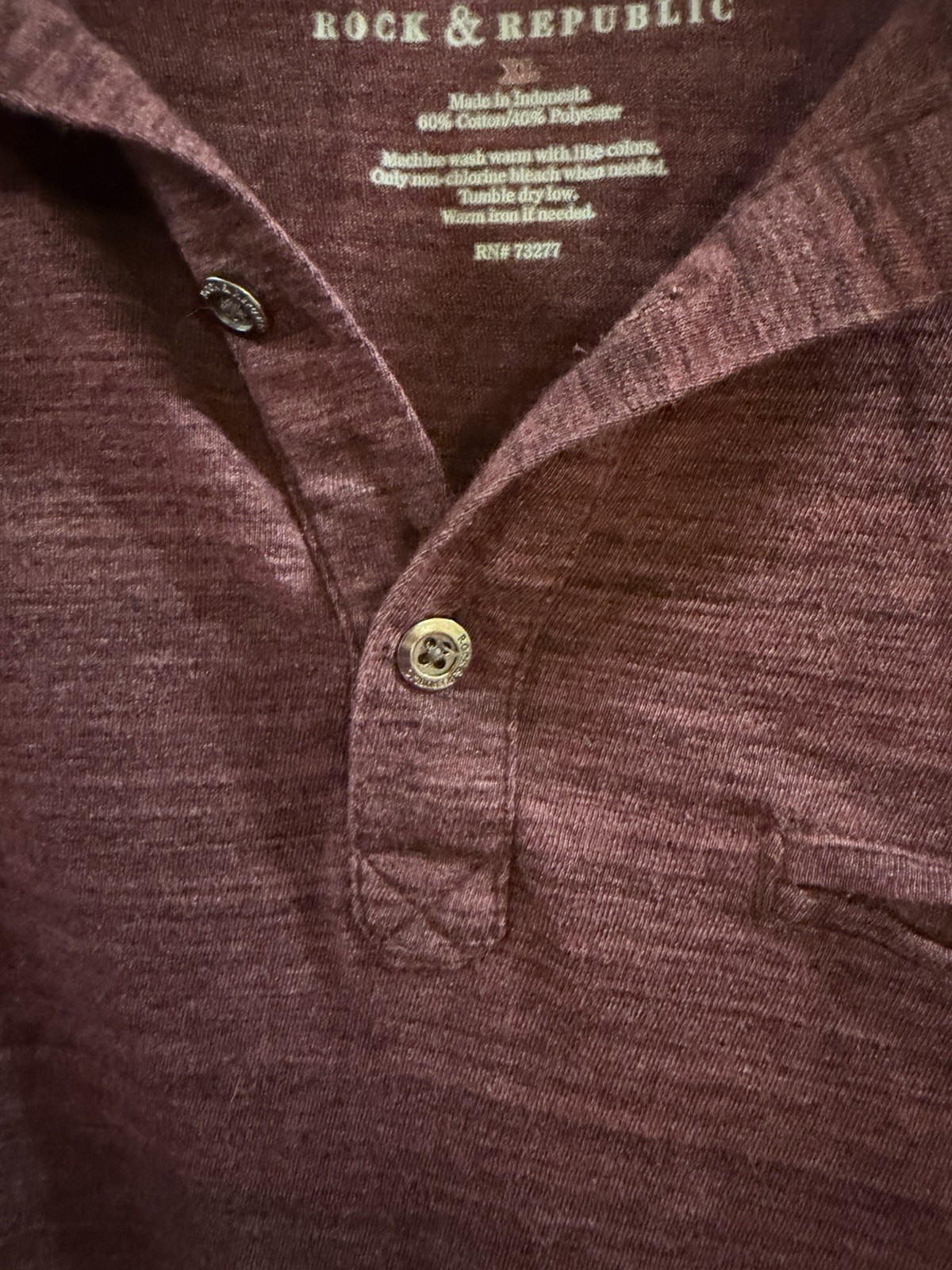 как выглядит Rock Republic Men s Polo Shirt Size XL Maroon Heather Knit Casual Short Sleeve фото