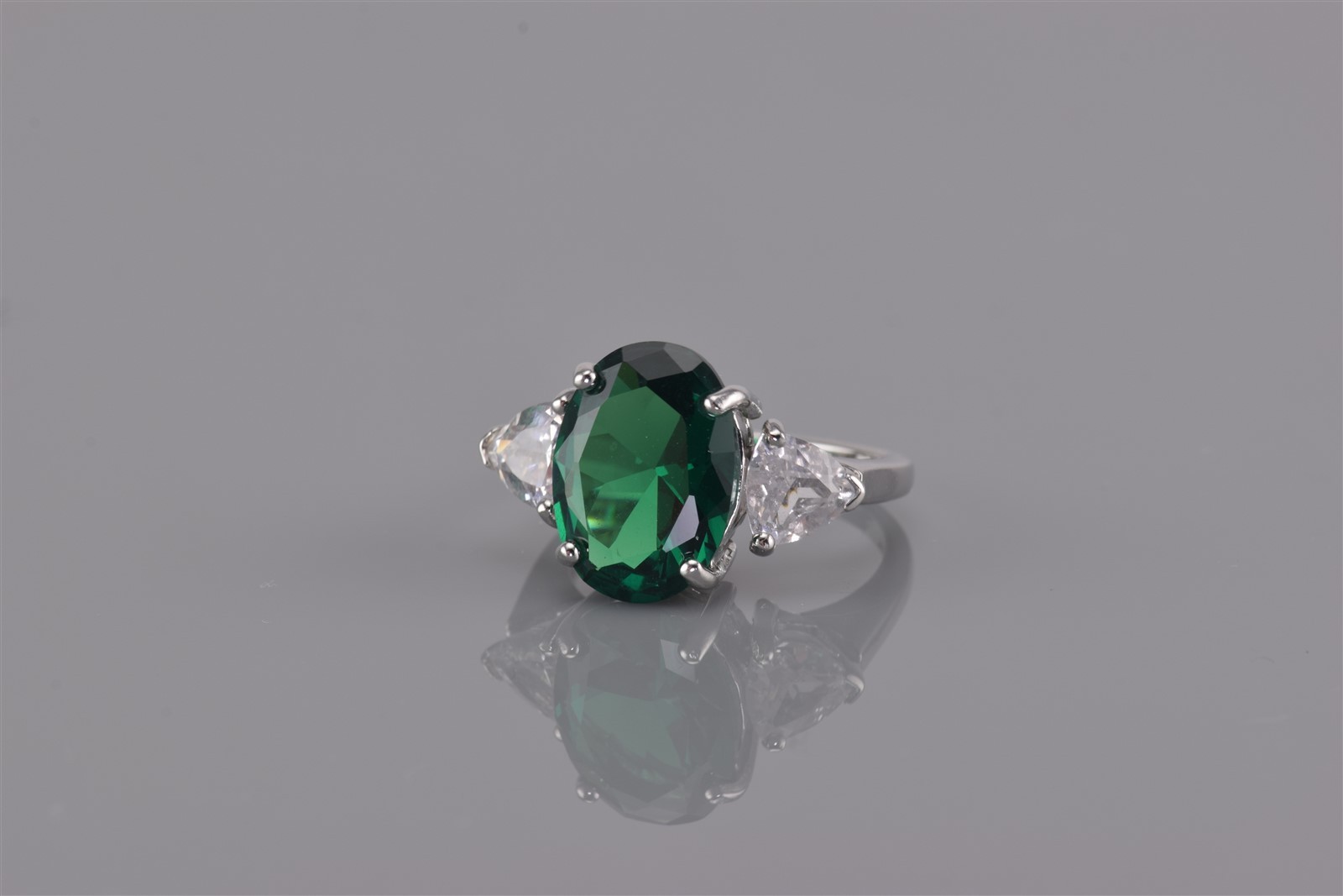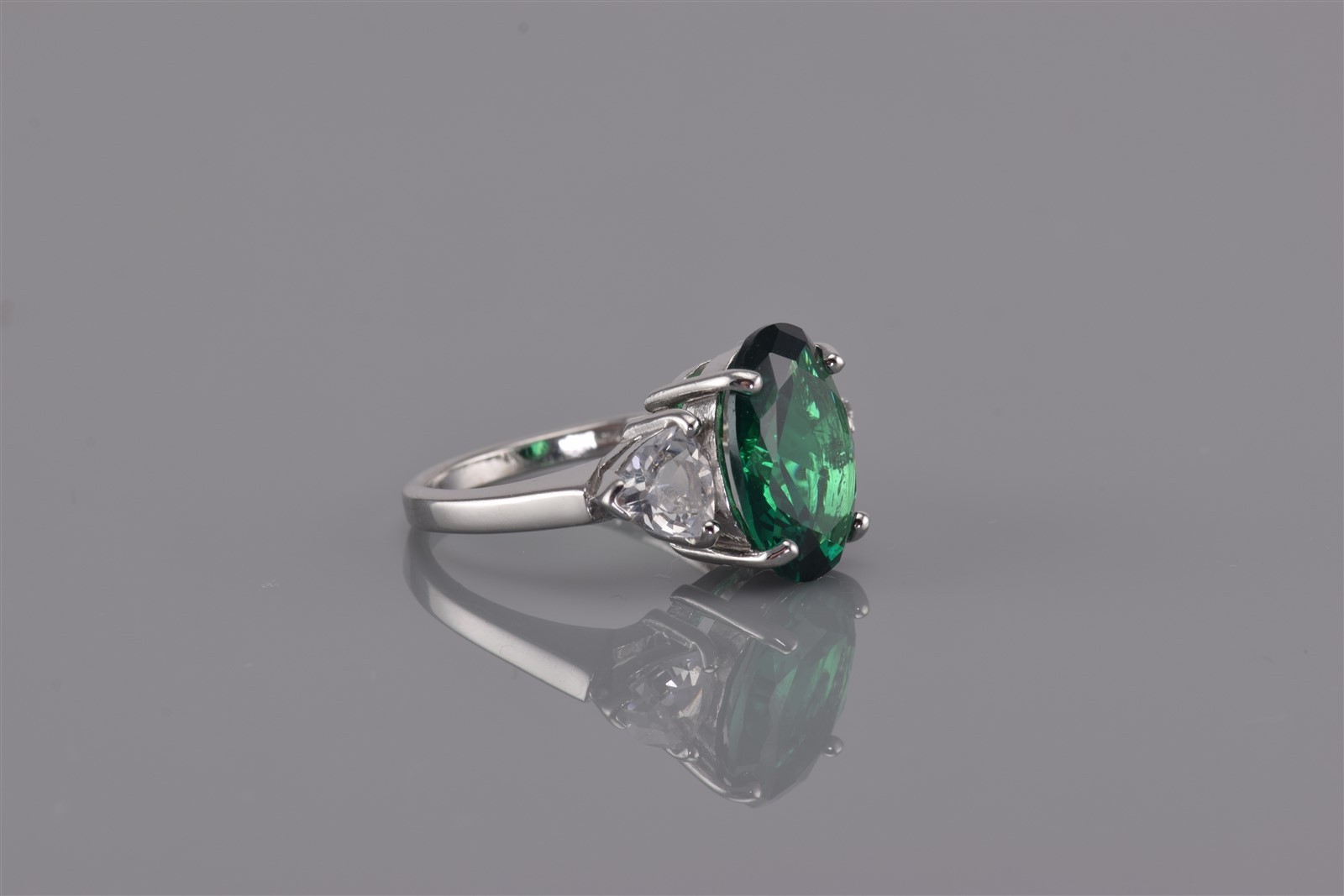 как выглядит Sterling Silver 14mm Green Cubic Zirconia Solitaire Trillion Band Ring 925 Sz: 7 фото