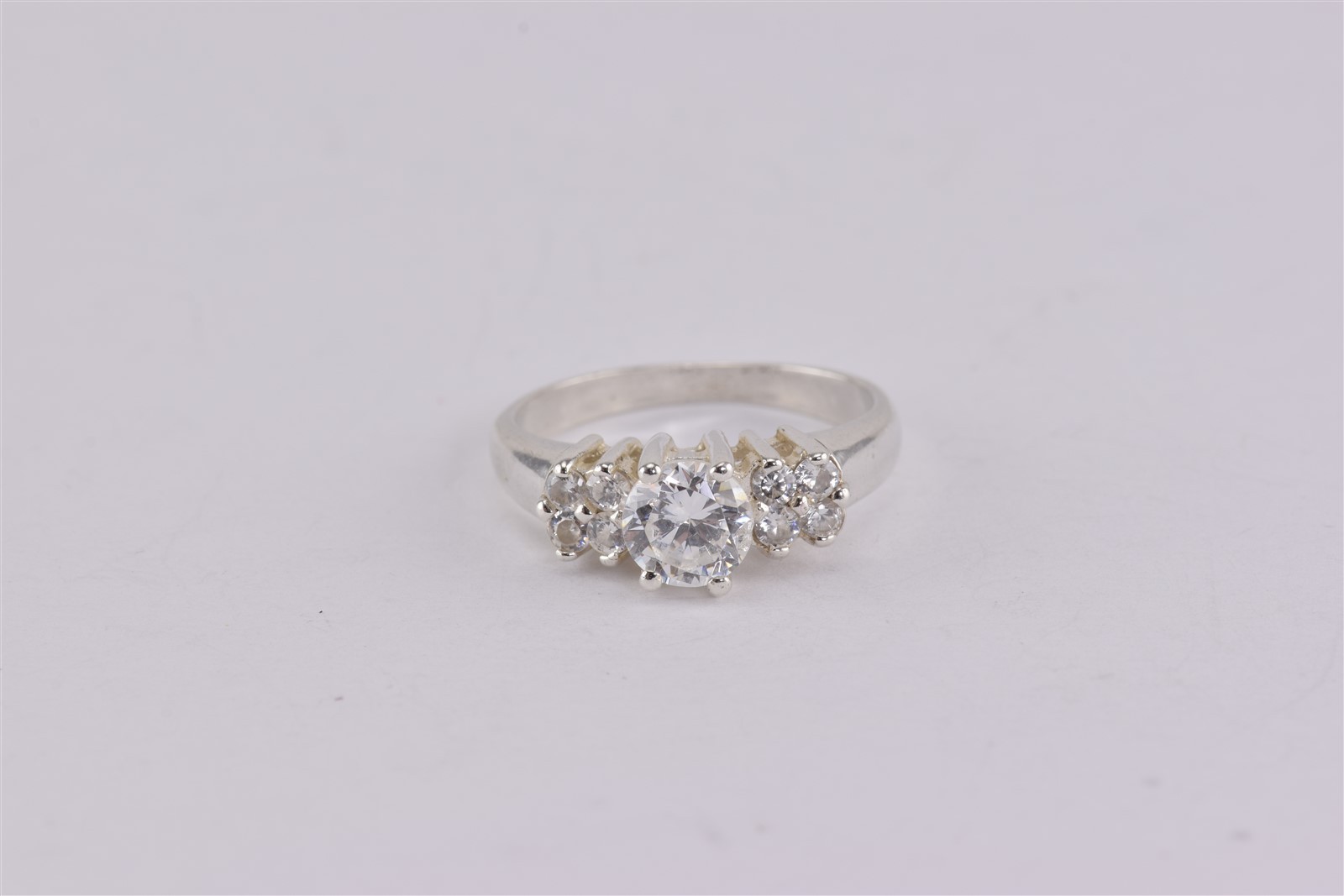 Sterling Silver Cubic Zirconia Solitaire Clustered Accented Band Ring 925 Sz: 8
