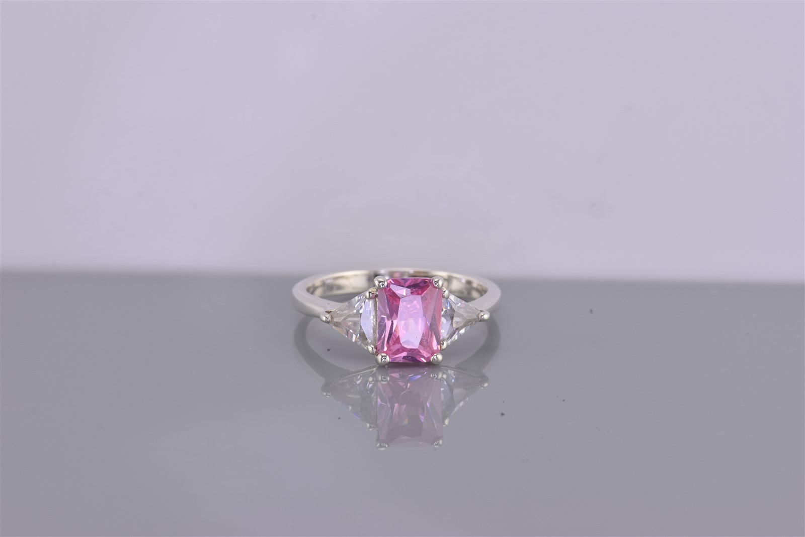 как выглядит Sterling Silver Pink Cubic Zirconia Trillion Accented Band Ring 925 Sz: 7 фото