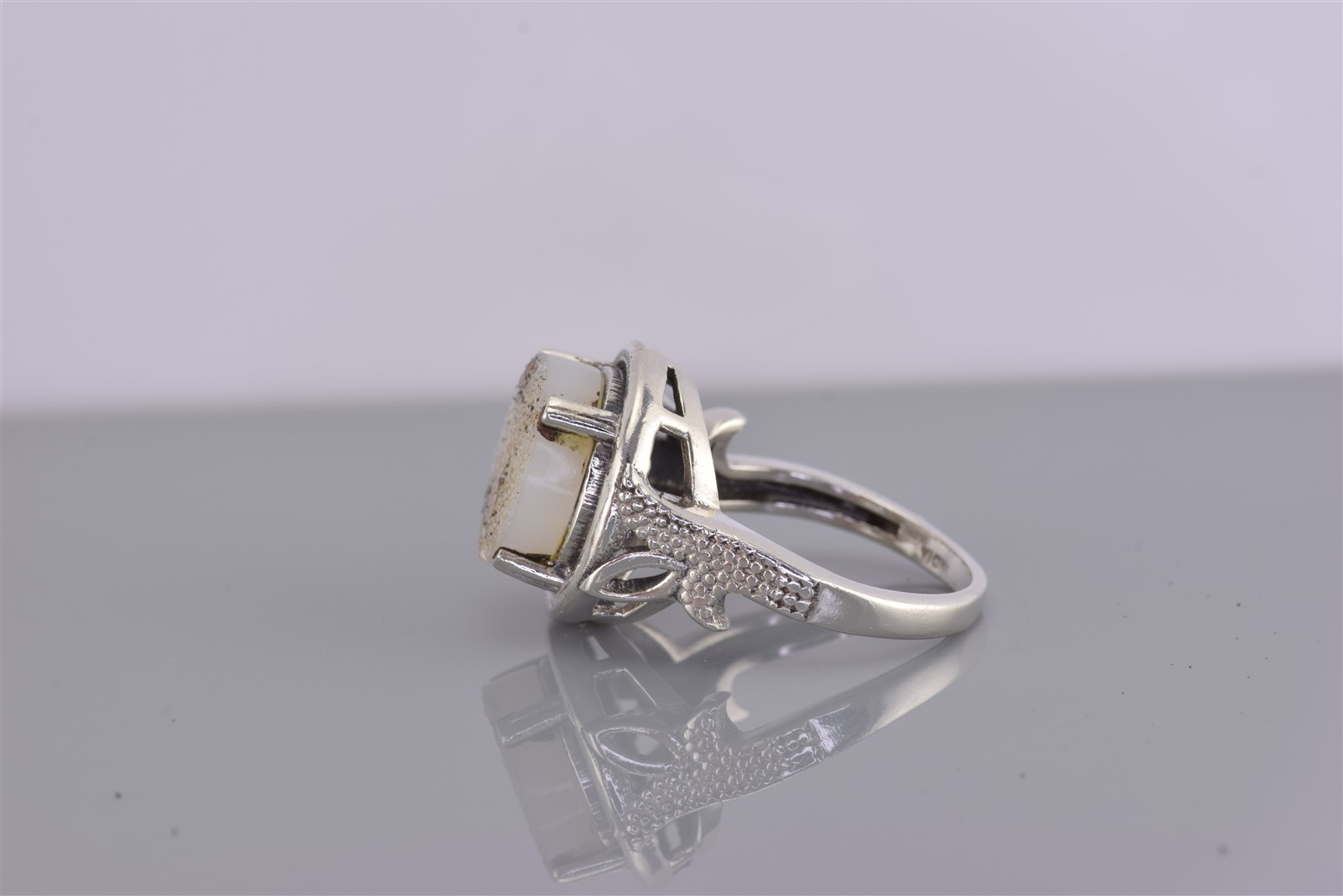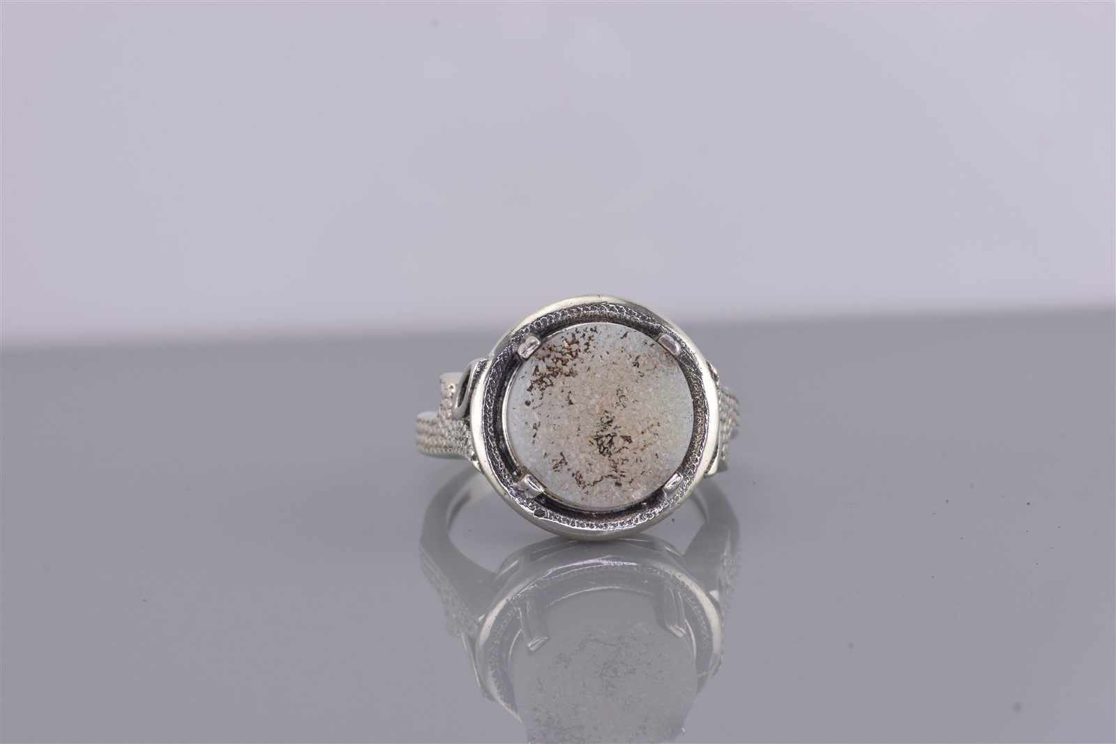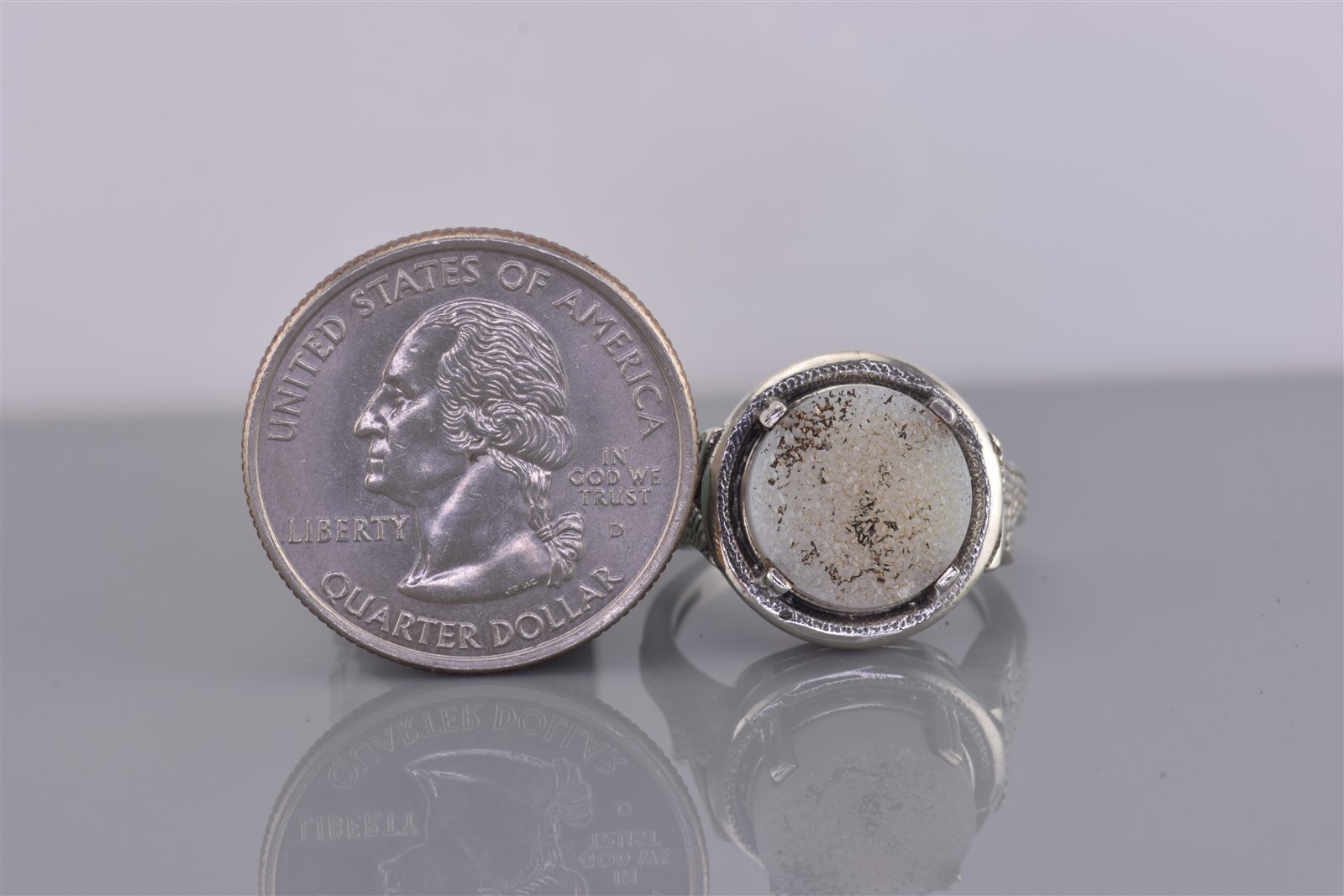 как выглядит Sterling Silver Round White Druzy Quartz Pebbled Band Ring 925 Sz: 7 фото