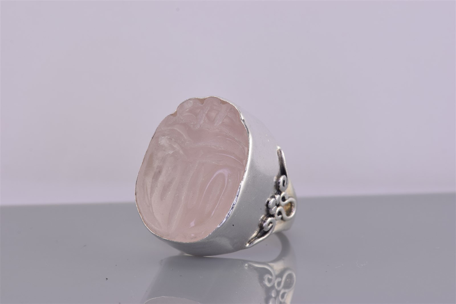 как выглядит Artisan Crafted Sterling Silver Carved Pale Pink Rose Quartz Band Ring 925 Sz: 8 фото