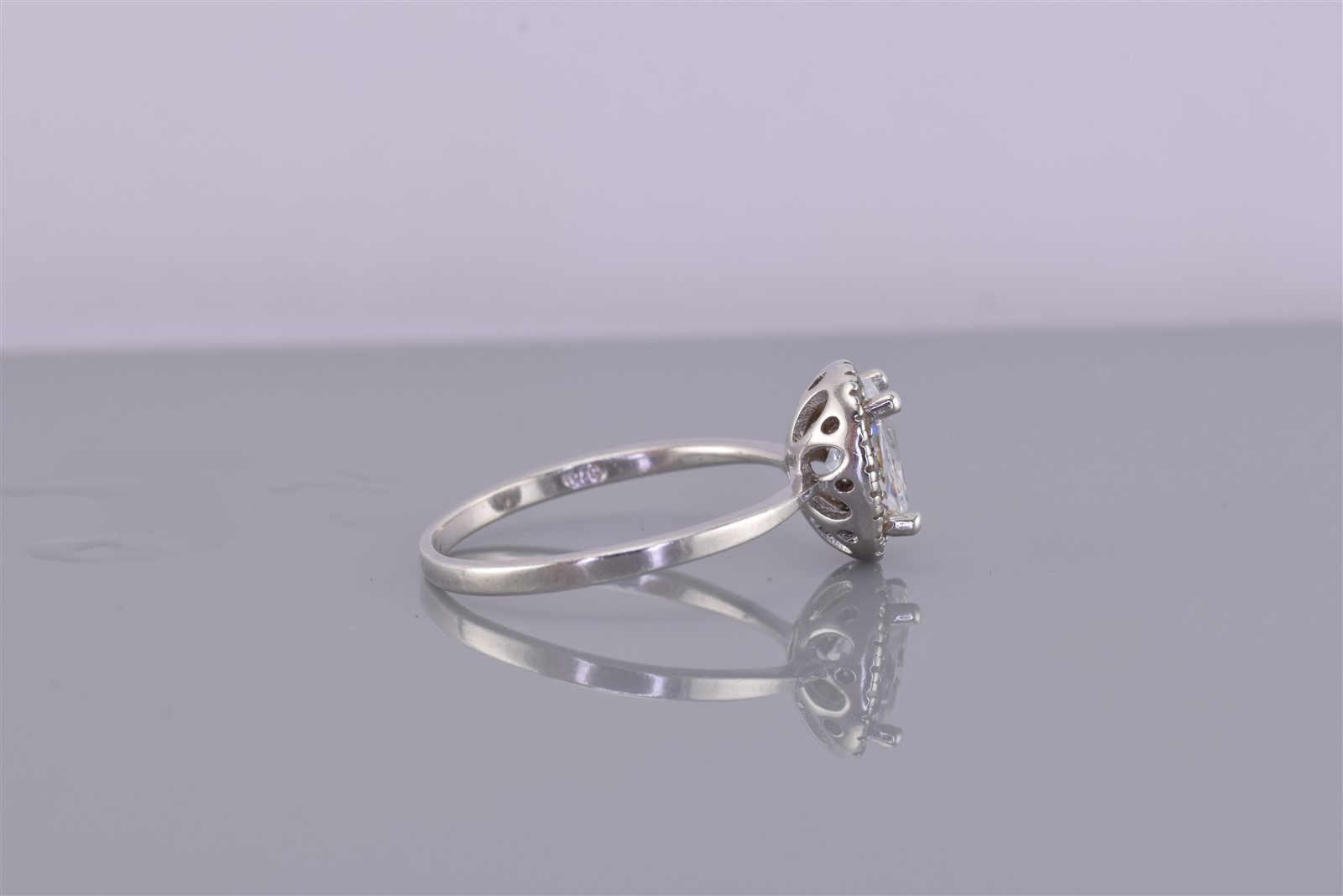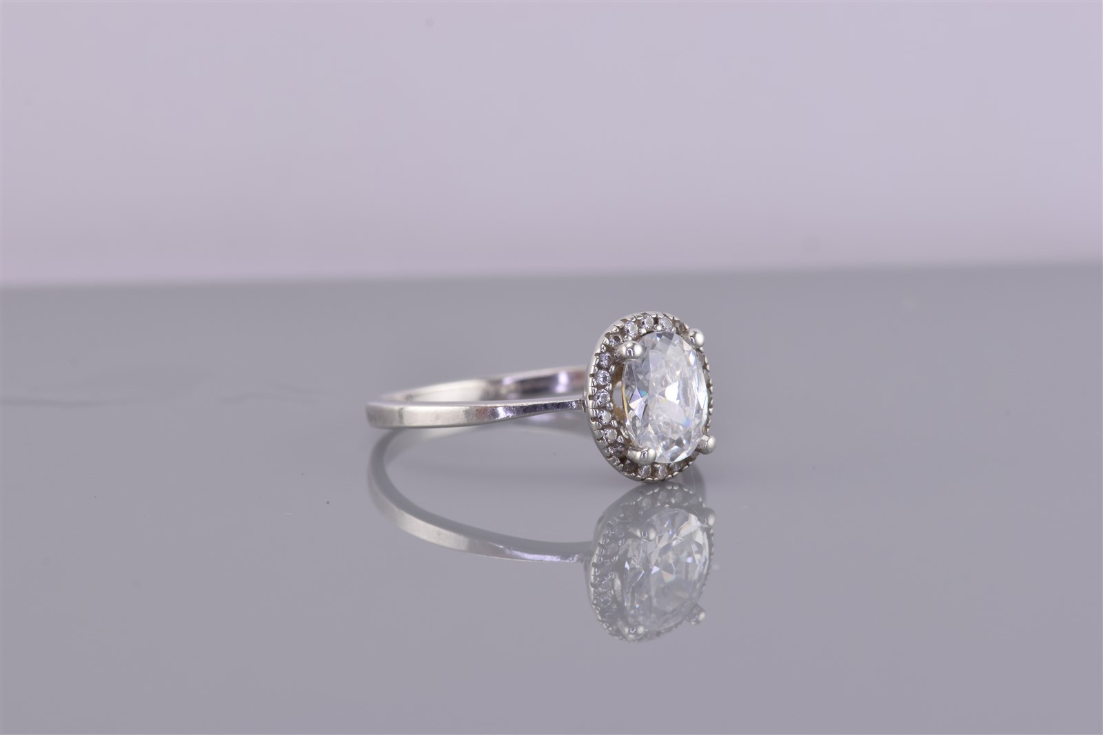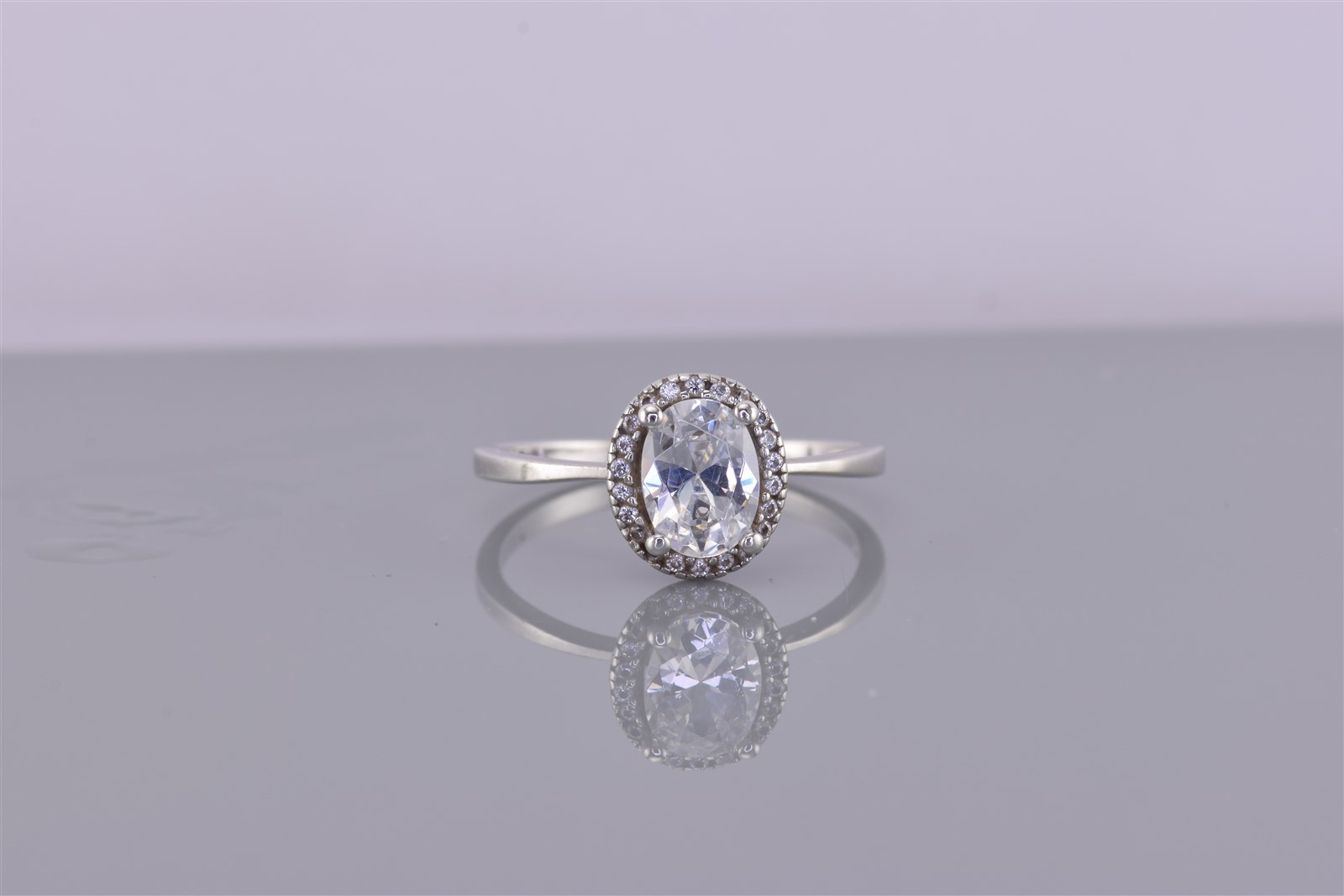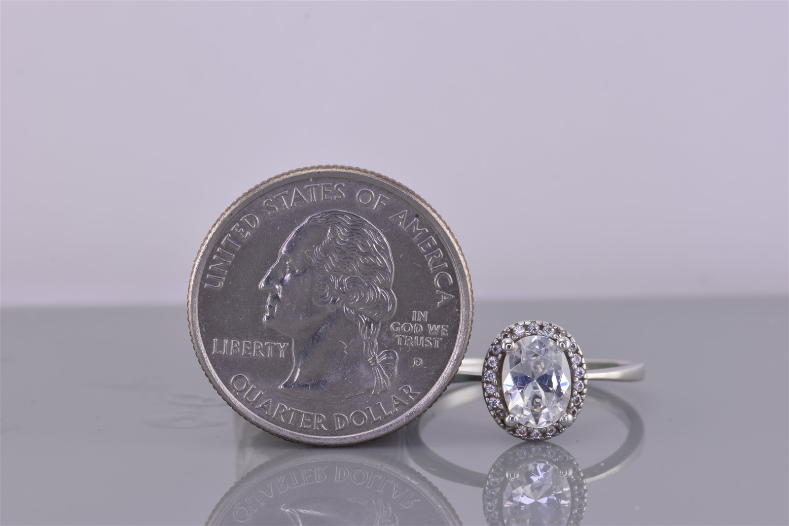 как выглядит Sterling Silver Oval Cubic Zirconia Solitaire Accented Halo Band Ring 925 Sz: 8 фото