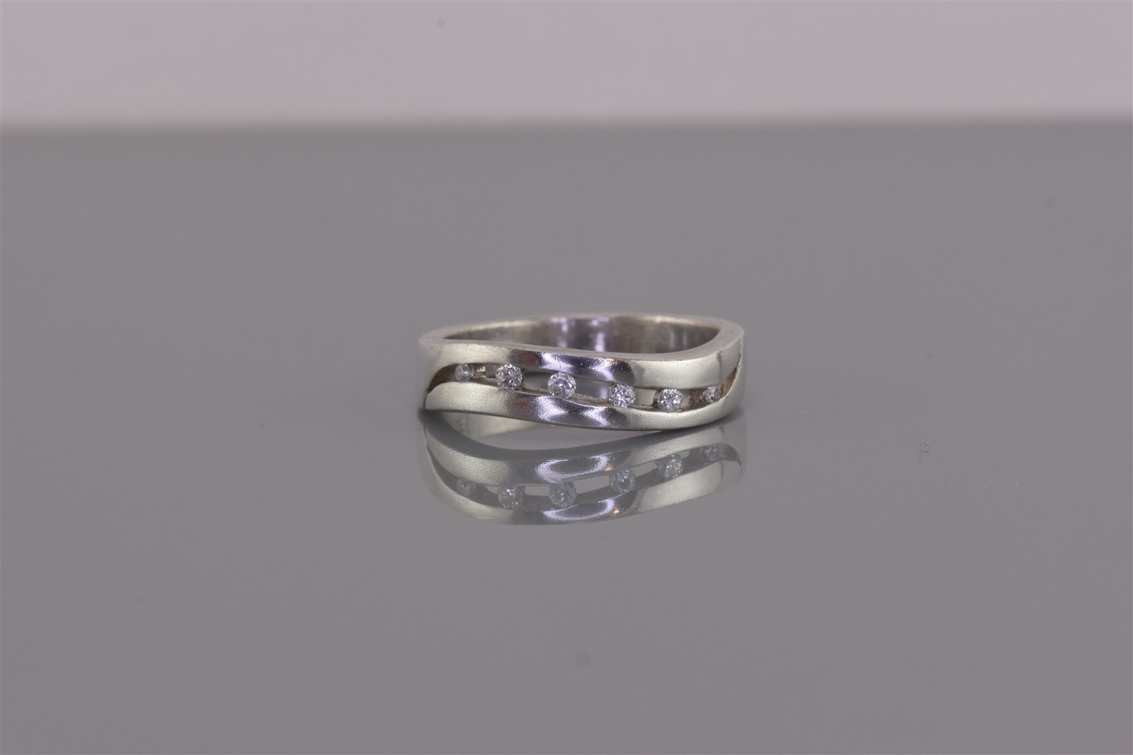 как выглядит Sterling Silver 5mm Wavy Channel Set Cubic Zirconia Solid Band Ring 925 Sz: 7 фото