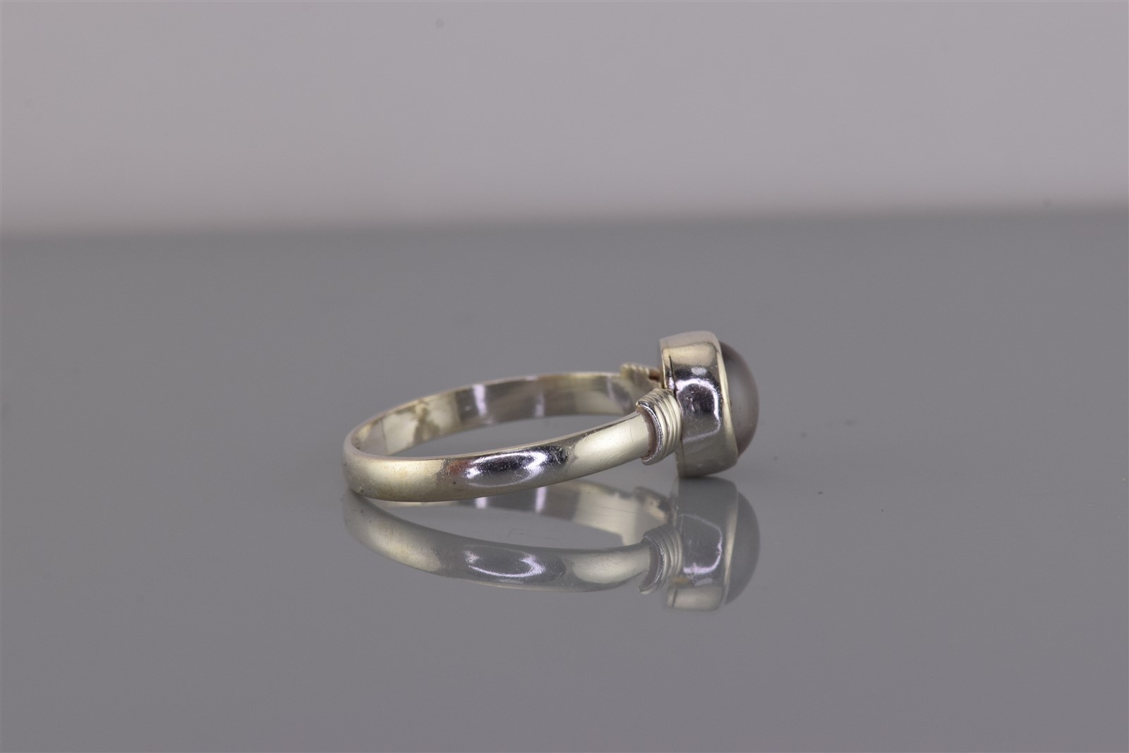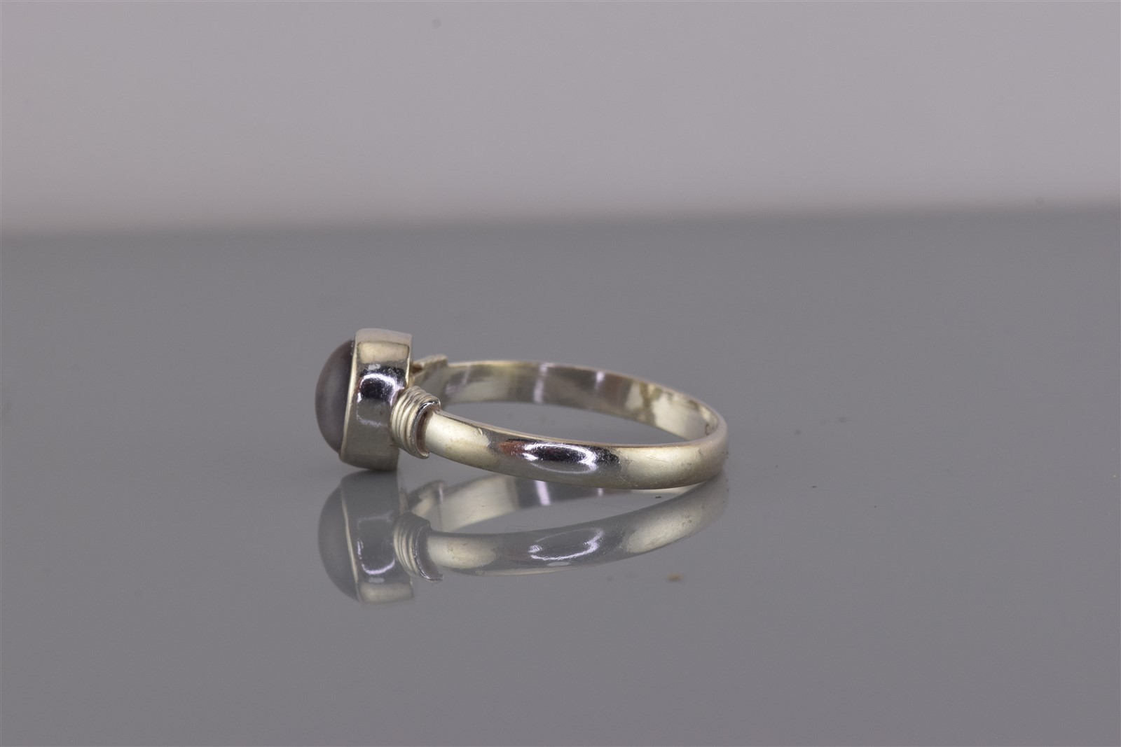 как выглядит Sterling Silver Oval Gray Quartz Ribbed Collared Band Ring 925 Sz: 8 фото