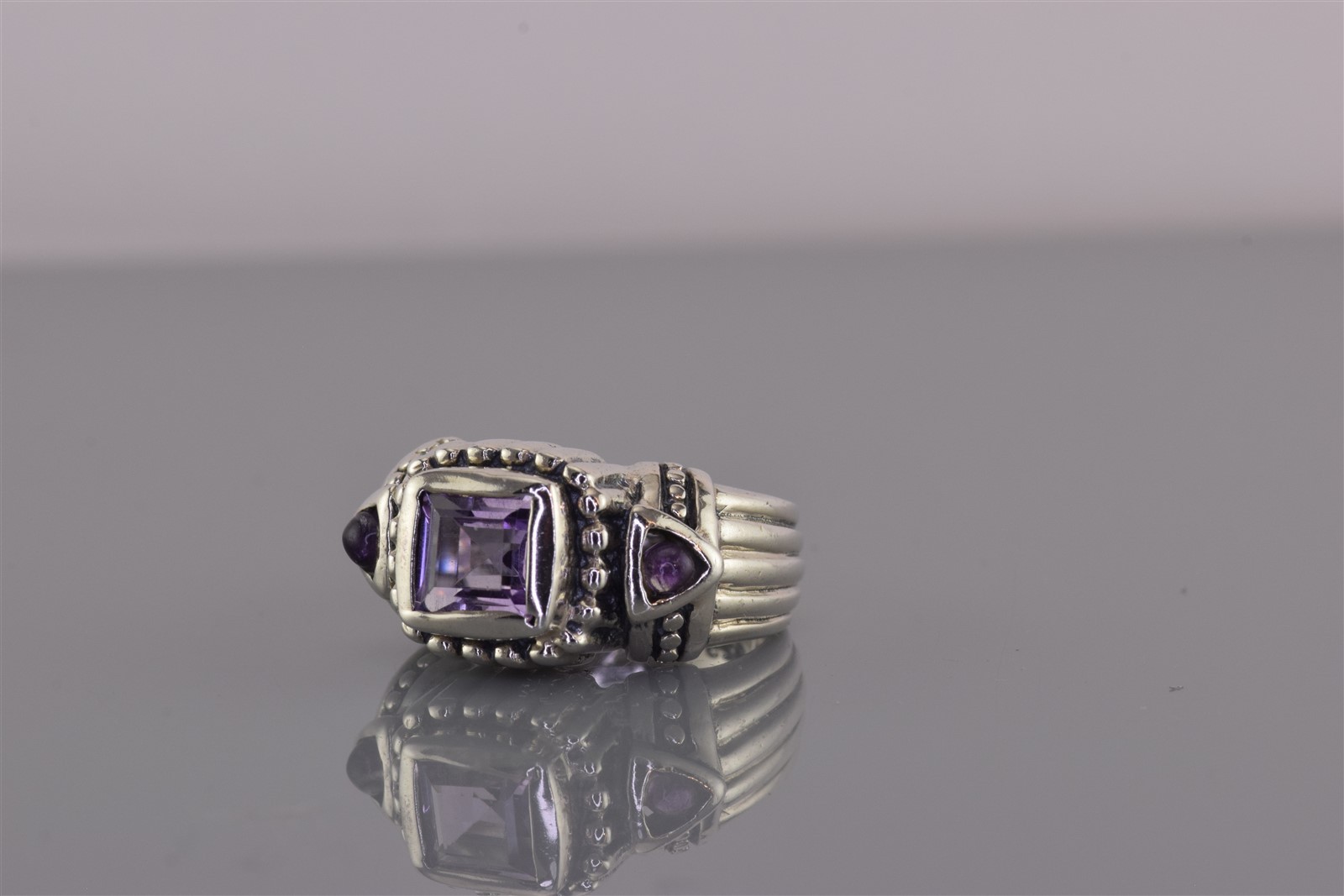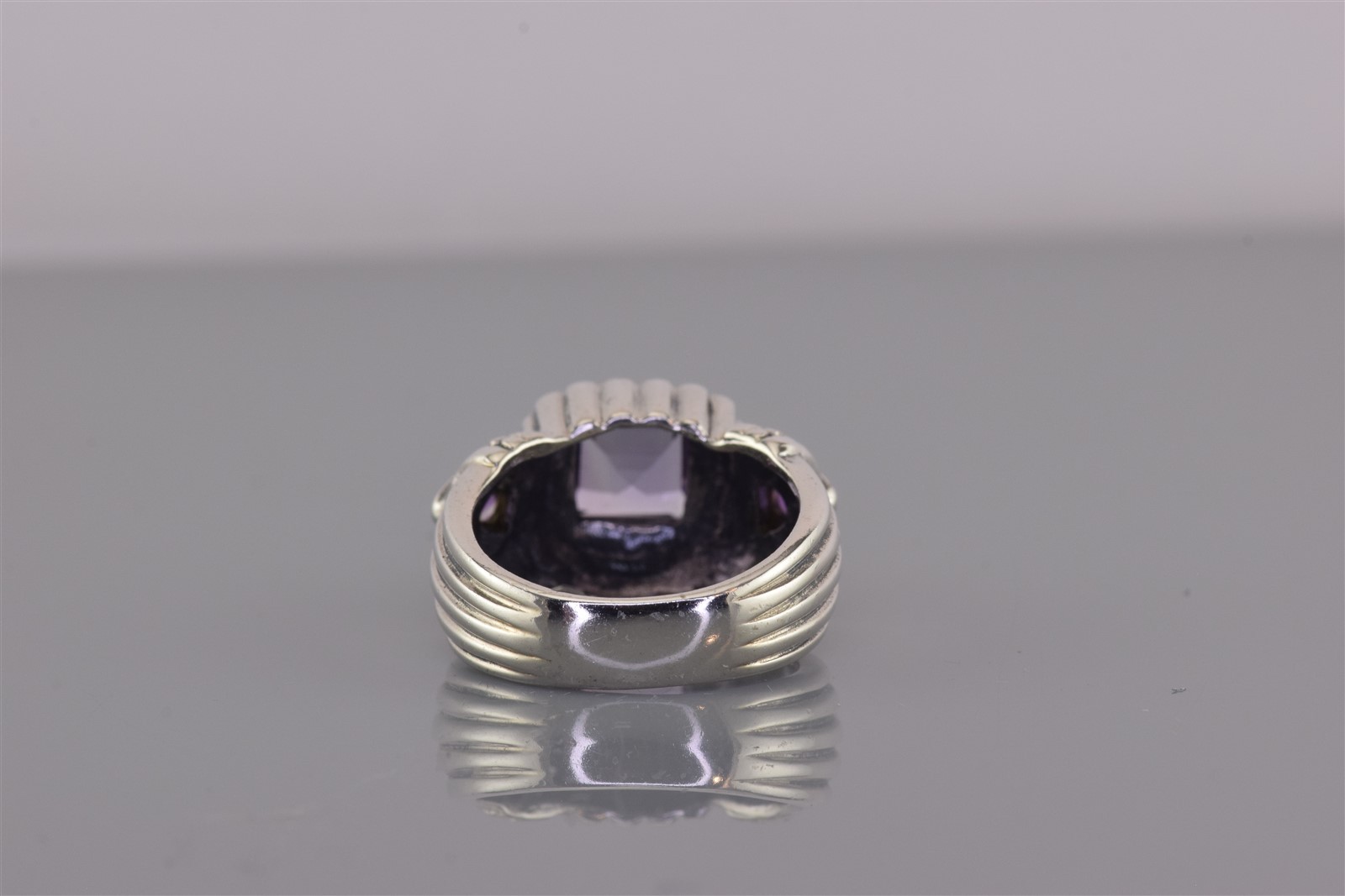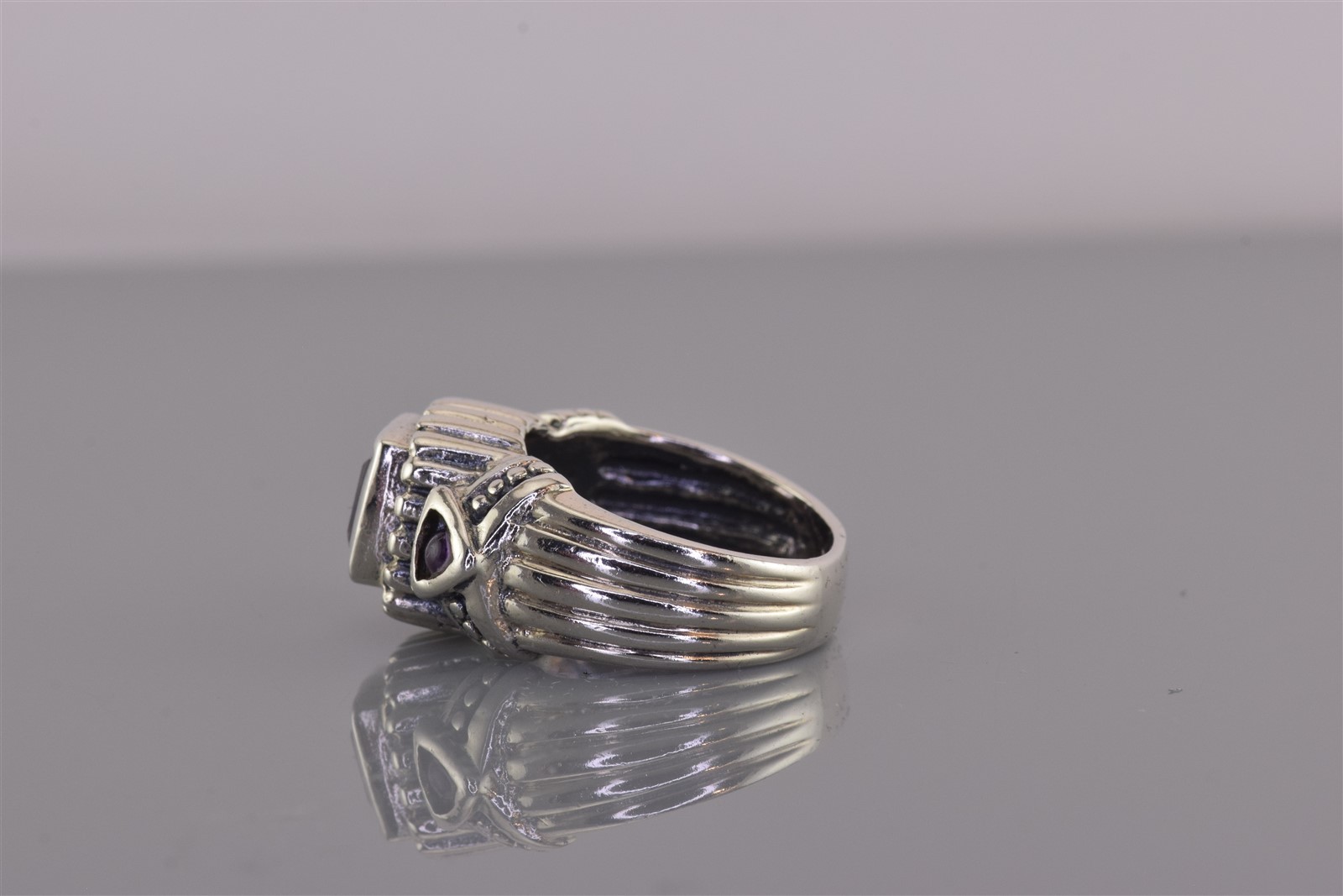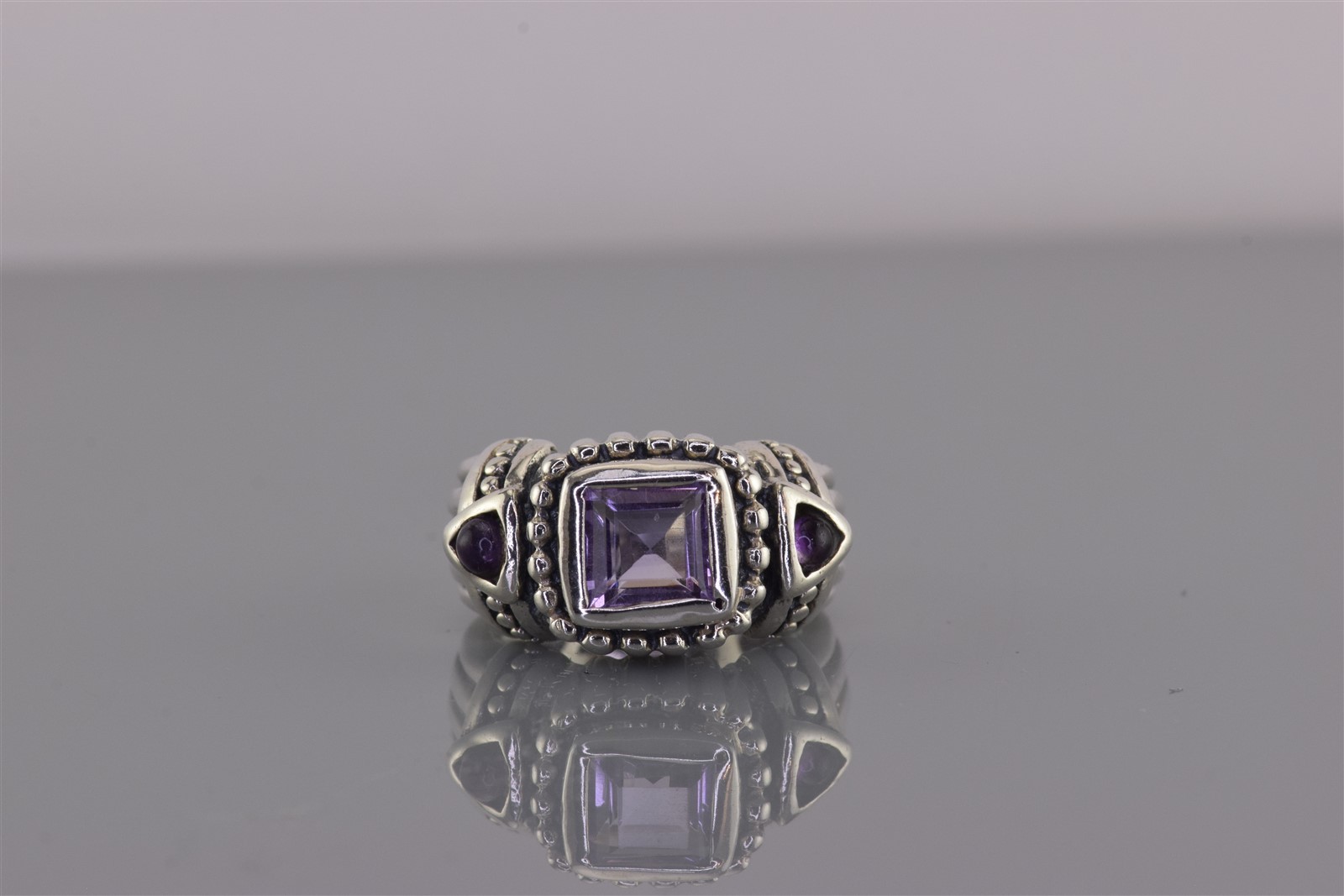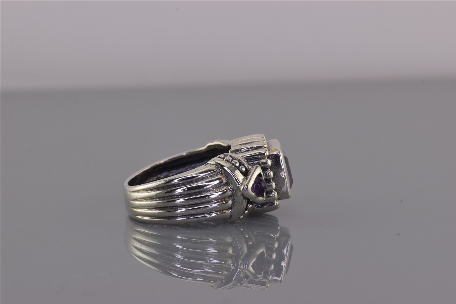 как выглядит Sterling Silver Beaded Halo Purple Amethyst Ribbed Accented Band Ring 925 Sz: 7 фото