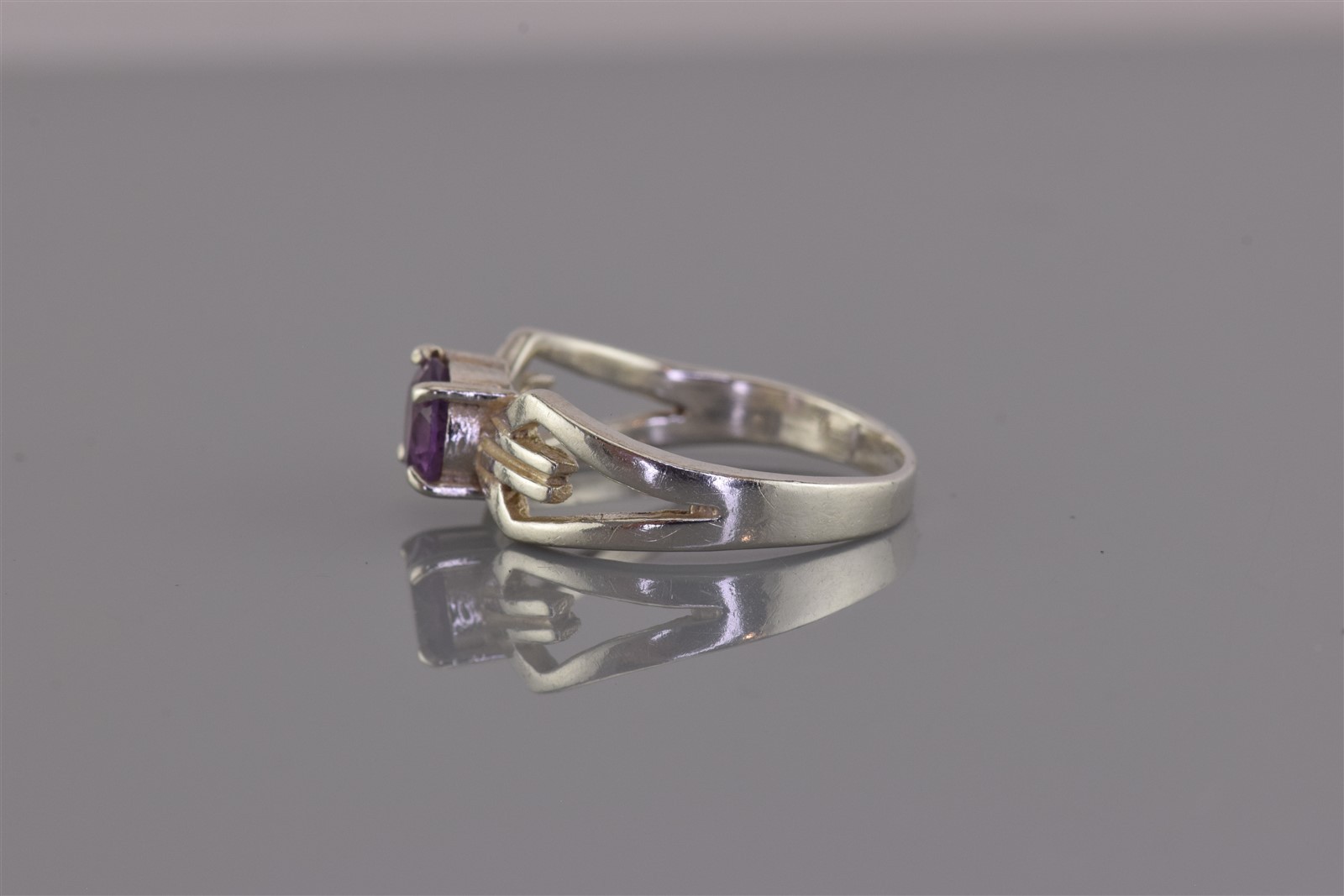 Sterling Silver Purple Amethyst Angle Looped Band Ring 925 Sz: 8