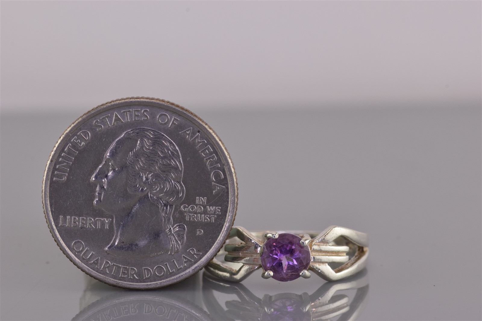 как выглядит Sterling Silver Purple Amethyst Angle Looped Band Ring 925 Sz: 8 фото