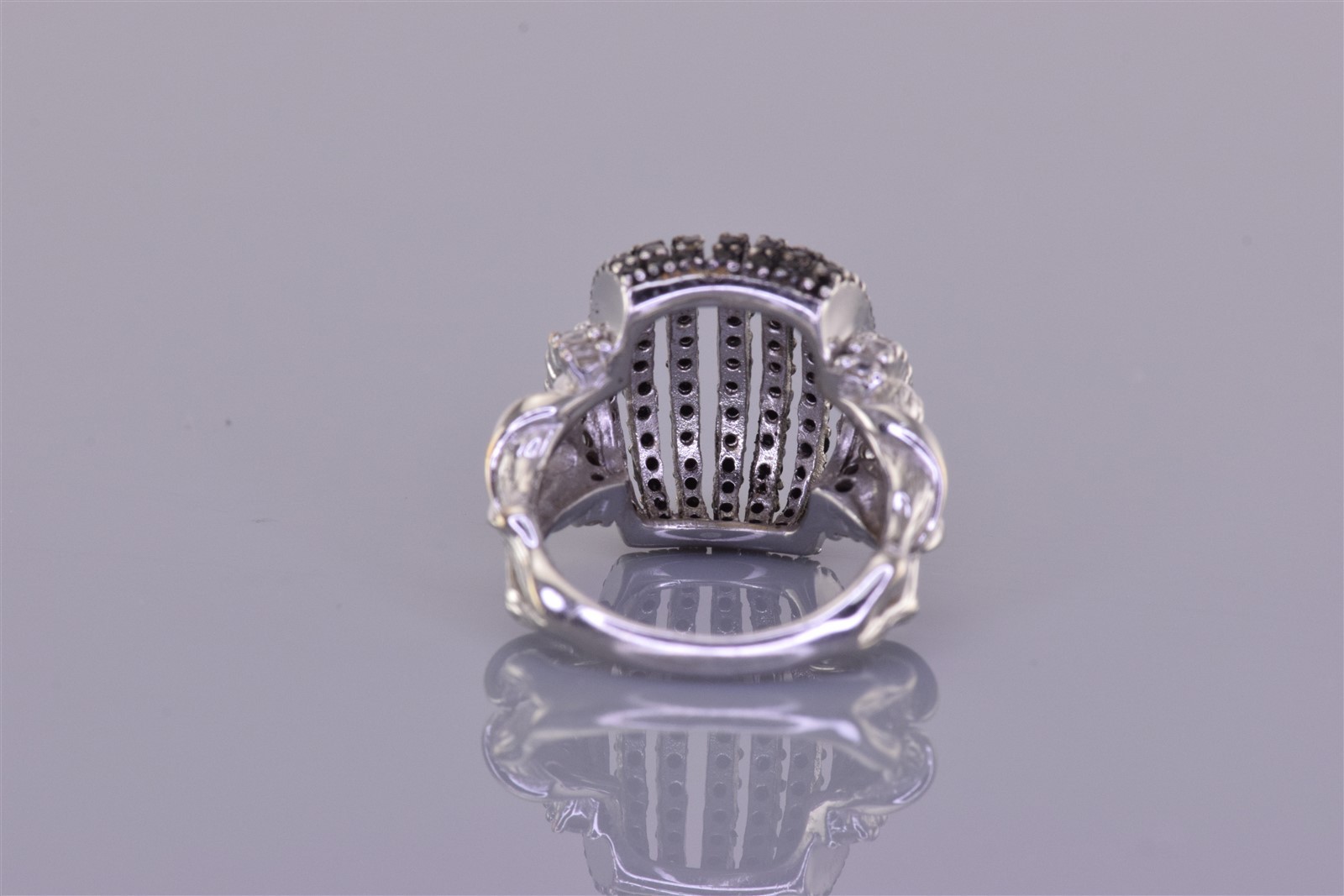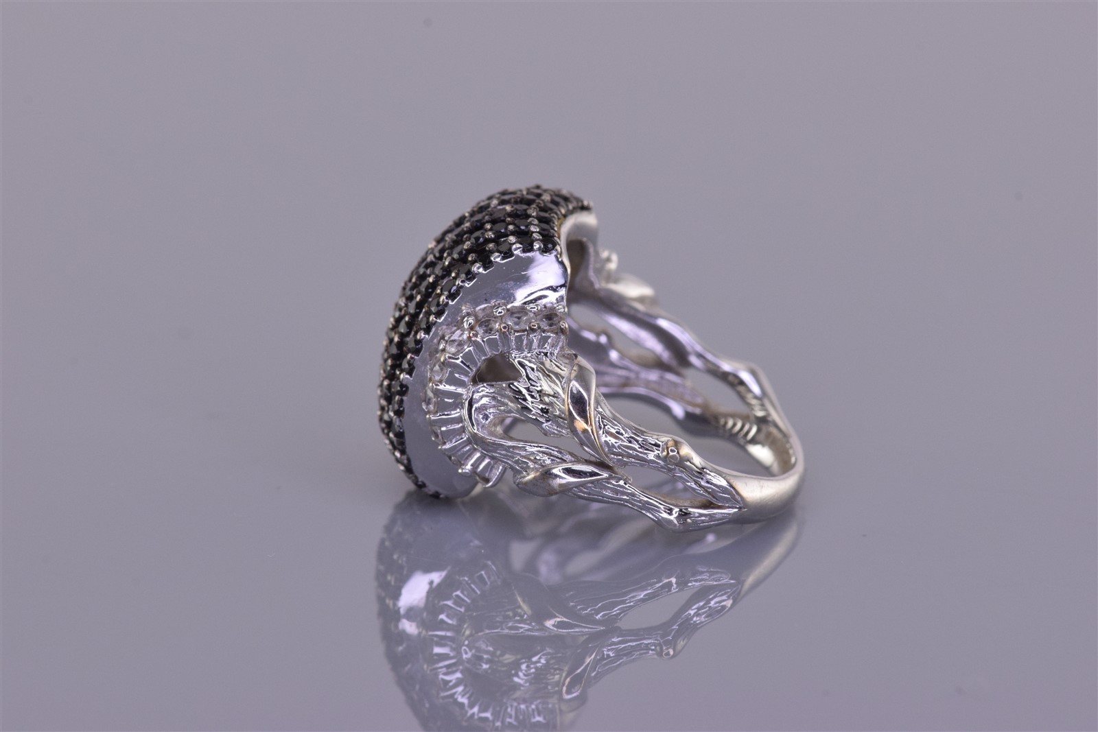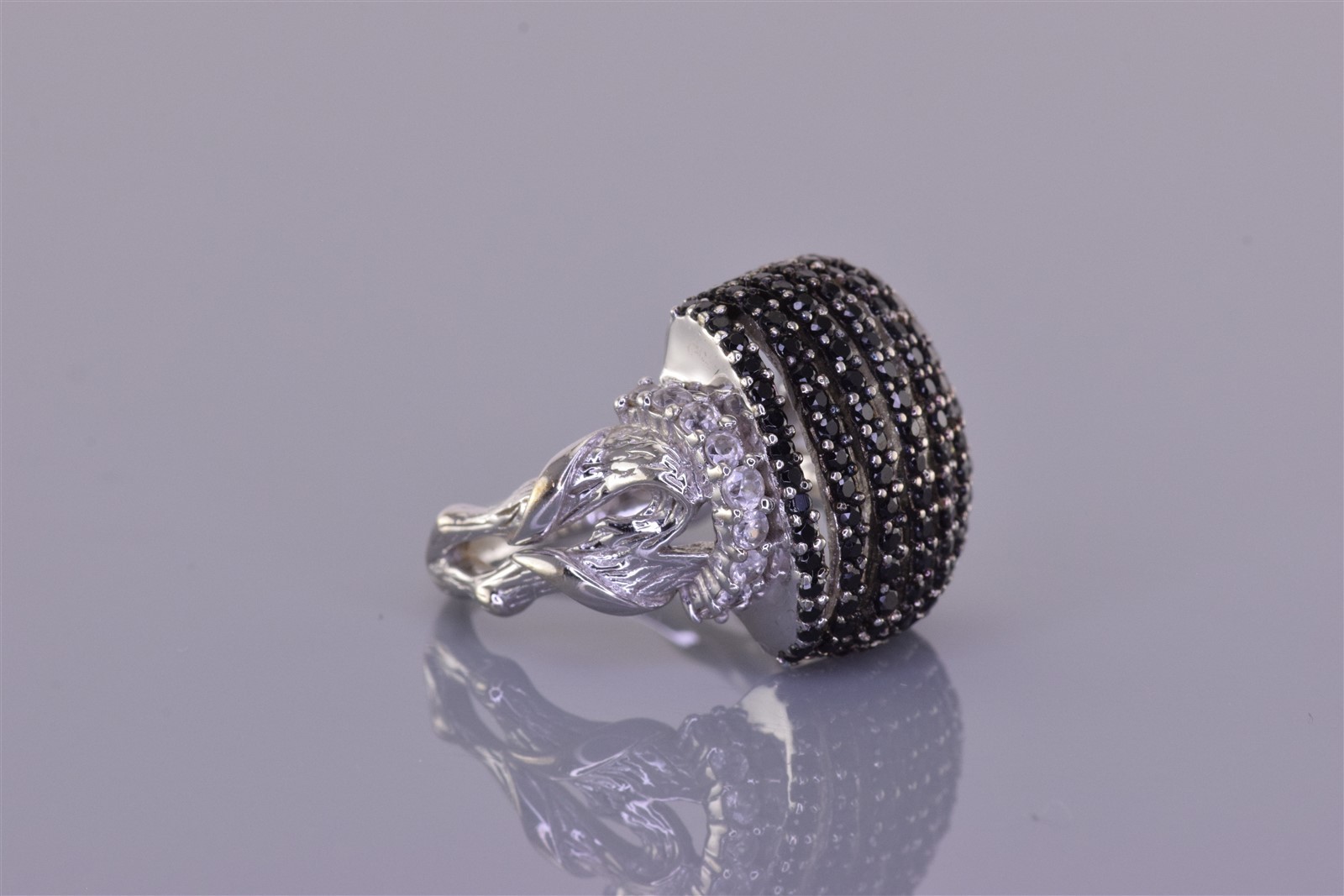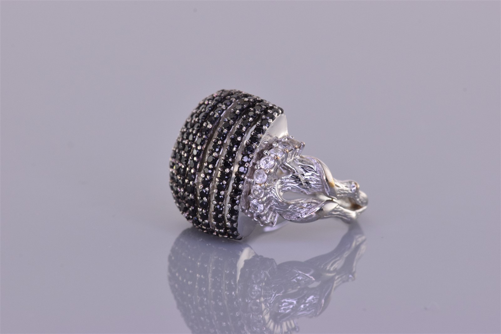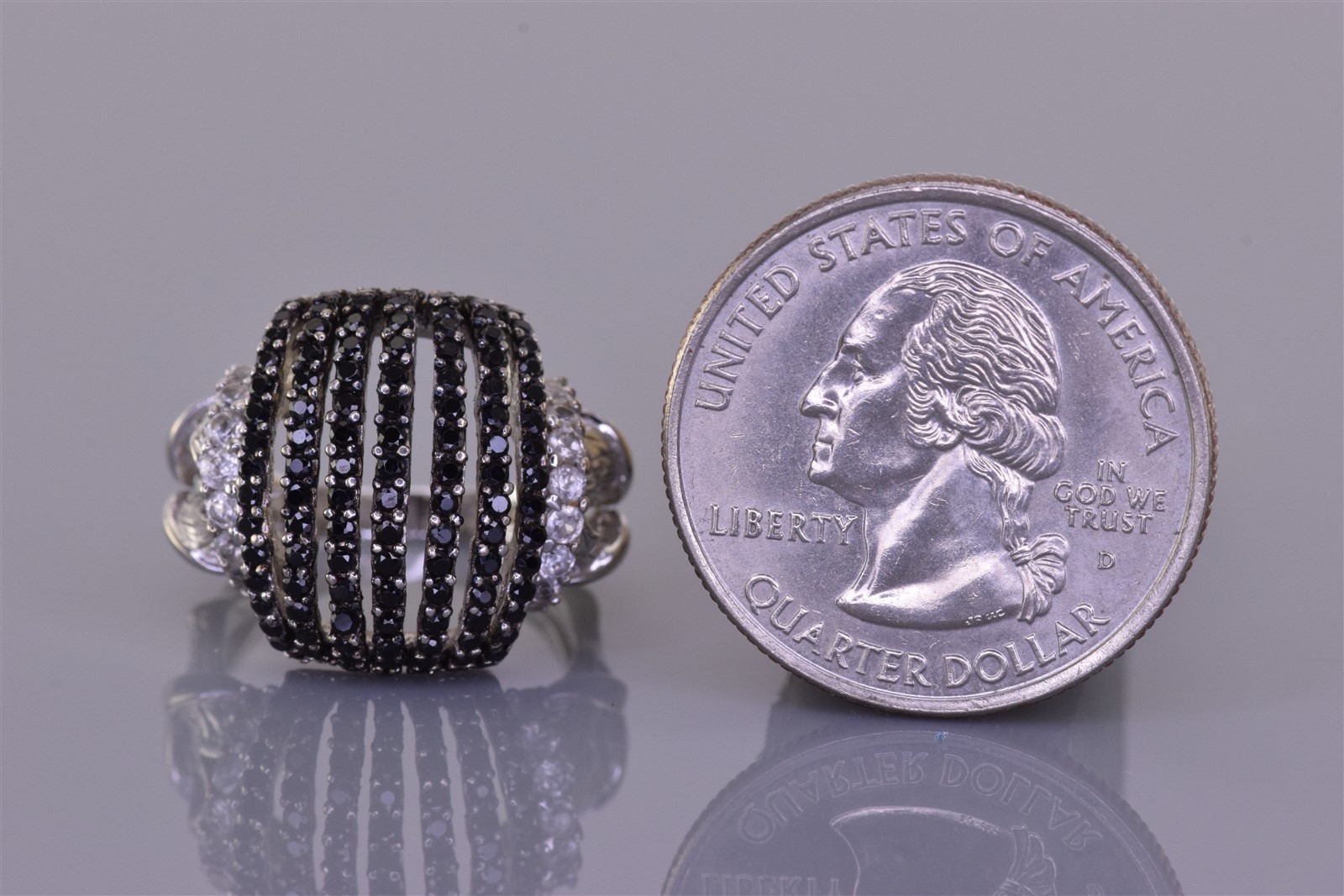 как выглядит Sterling Silver Slit Black Tourmaline Collared White Topaz Band Ring 925 Sz: 5 фото