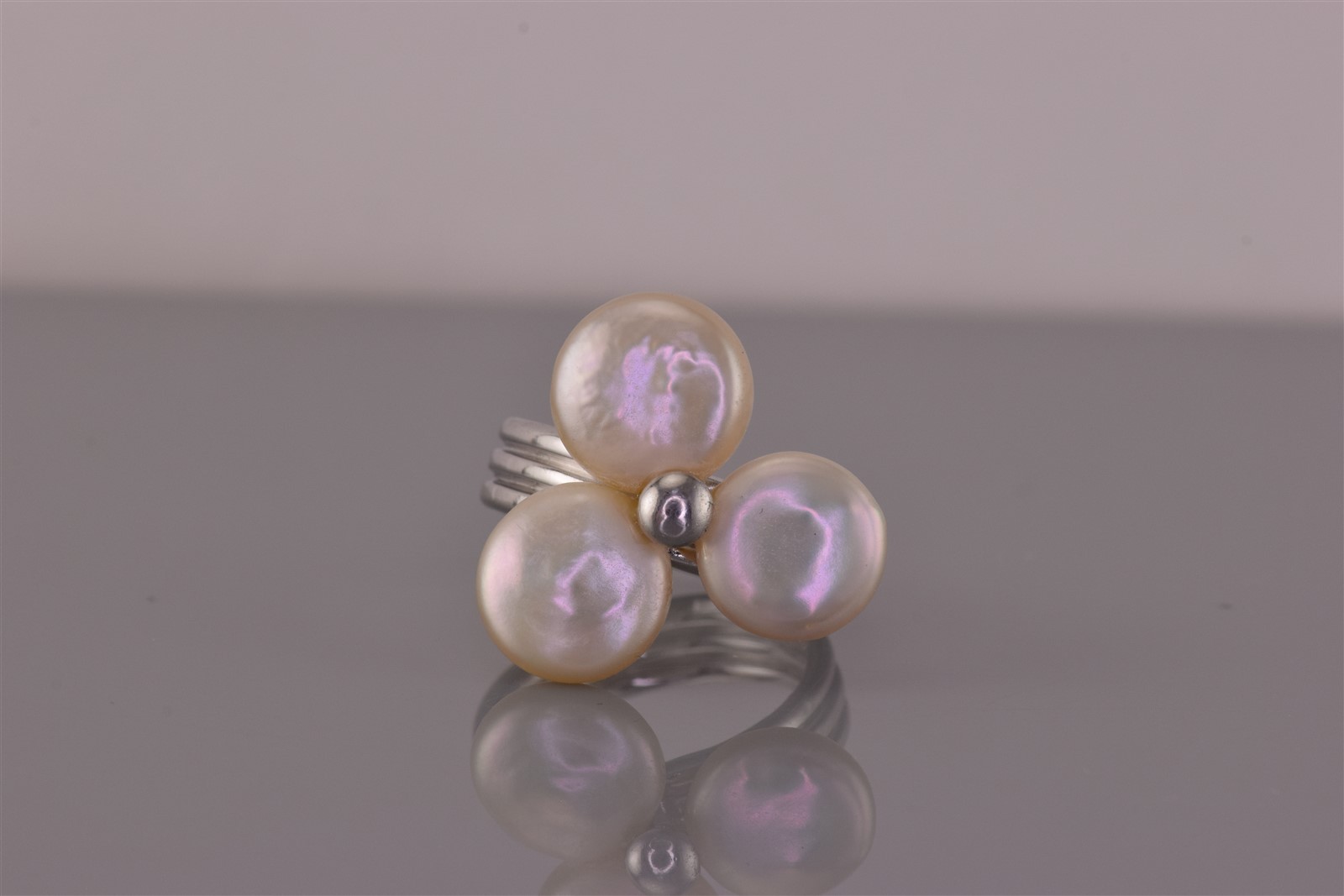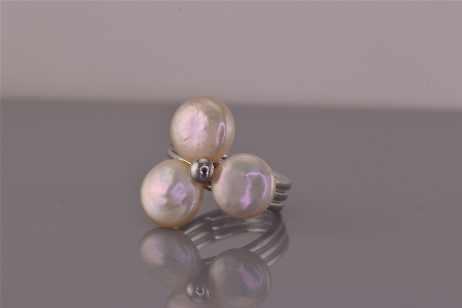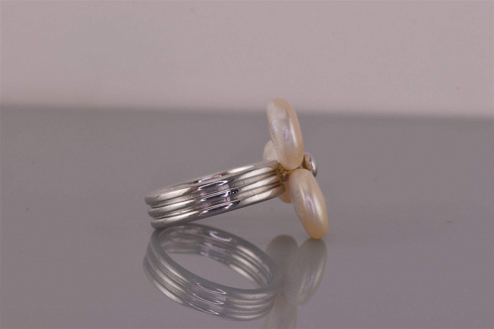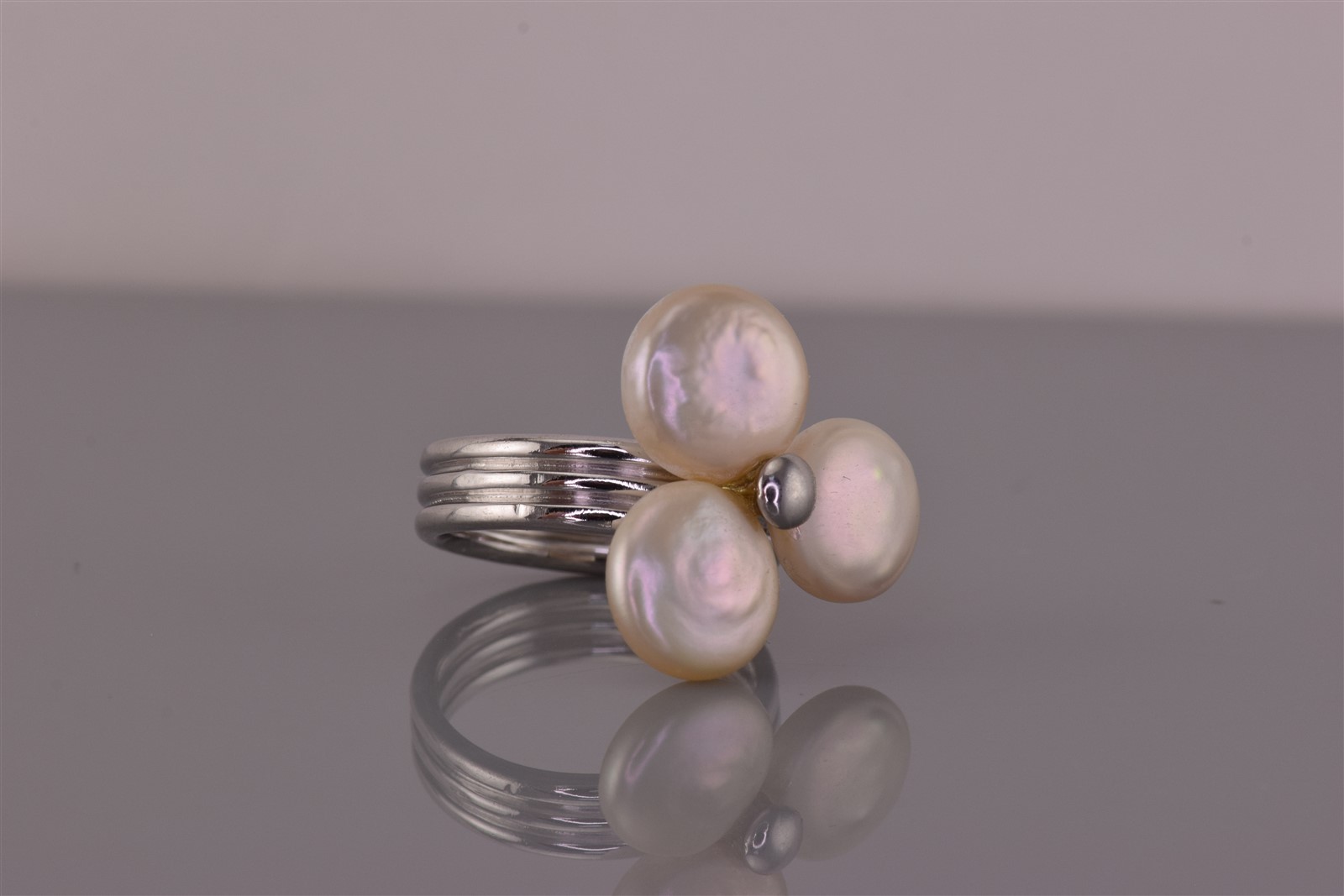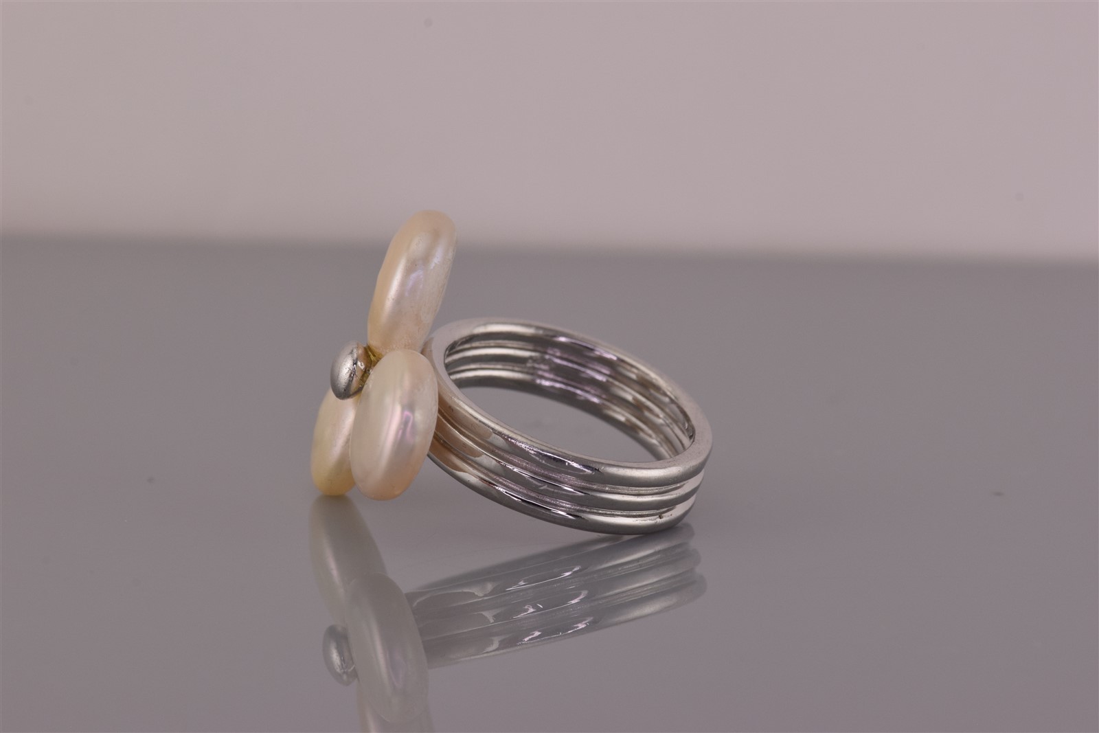 как выглядит Sterling Silver 20mm White Freshwater Pearl Flower Triple Band Ring 925 Sz: 6 фото