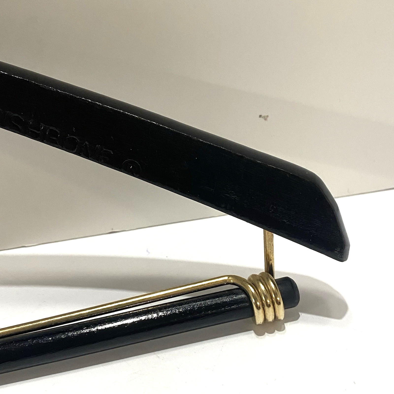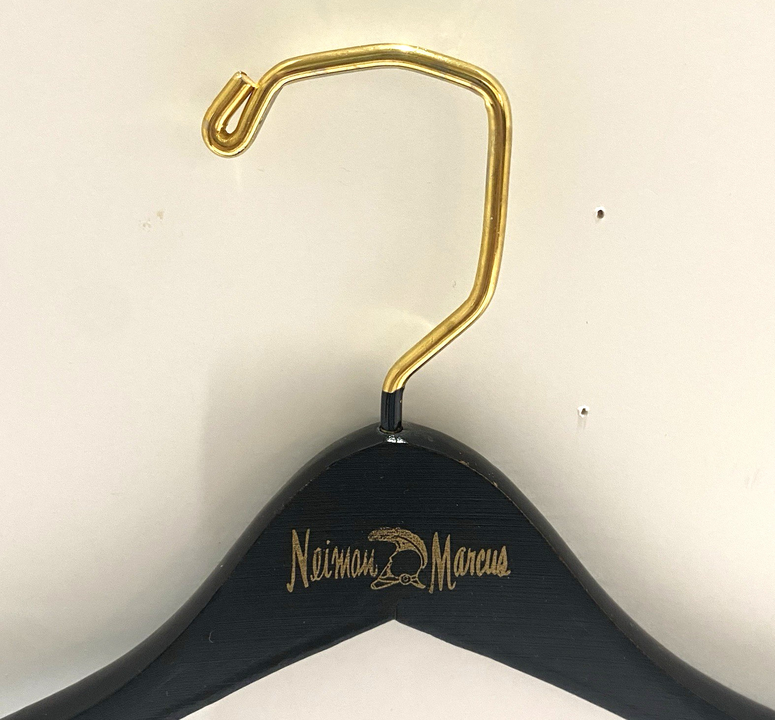 Vintage Neiman Marcus Wooden Suit Hanger Black Gold Hook Designer Luxury Closet