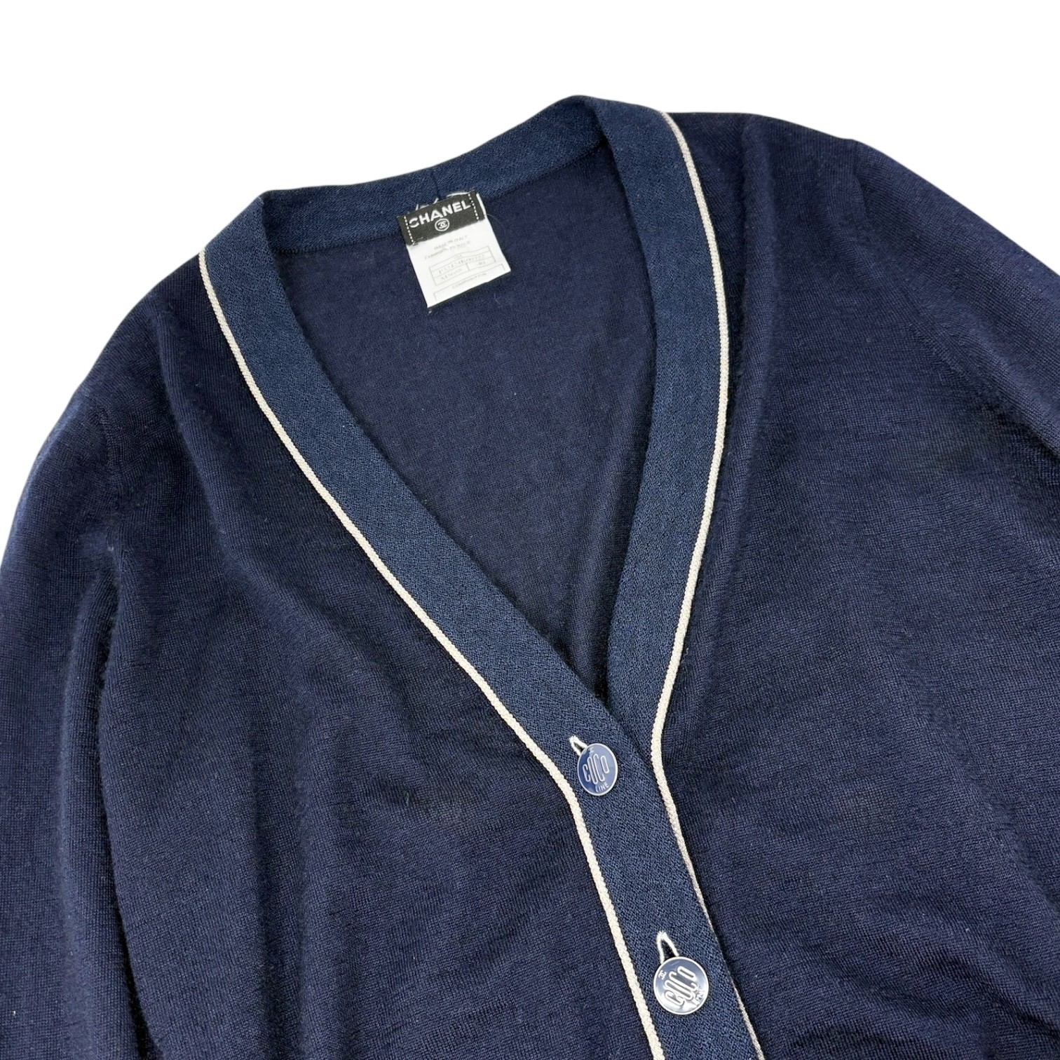 CHANEL Vintage 08C CC Line Button Cashmere Cardigan Knit Top 40 Blue Silver