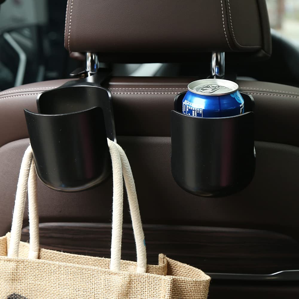 Car Seat Headrest Hook Organizer with Cup Holder - Universal Vehicle Storage ...