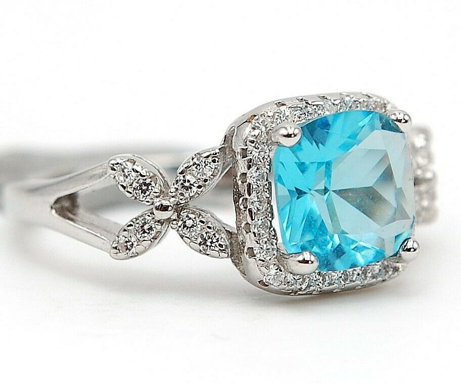 как выглядит 2CT Blue Topaz White Topaz 925 Solid Sterling Silver Ring Sz 6 UB4-4 фото