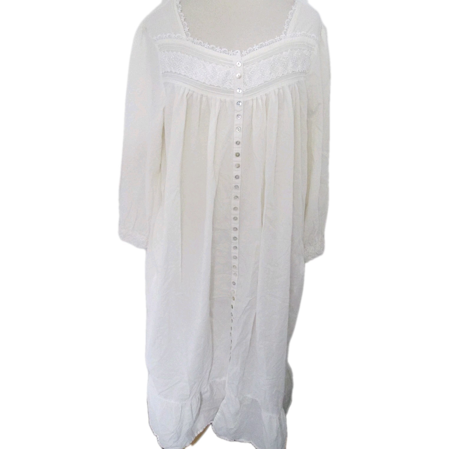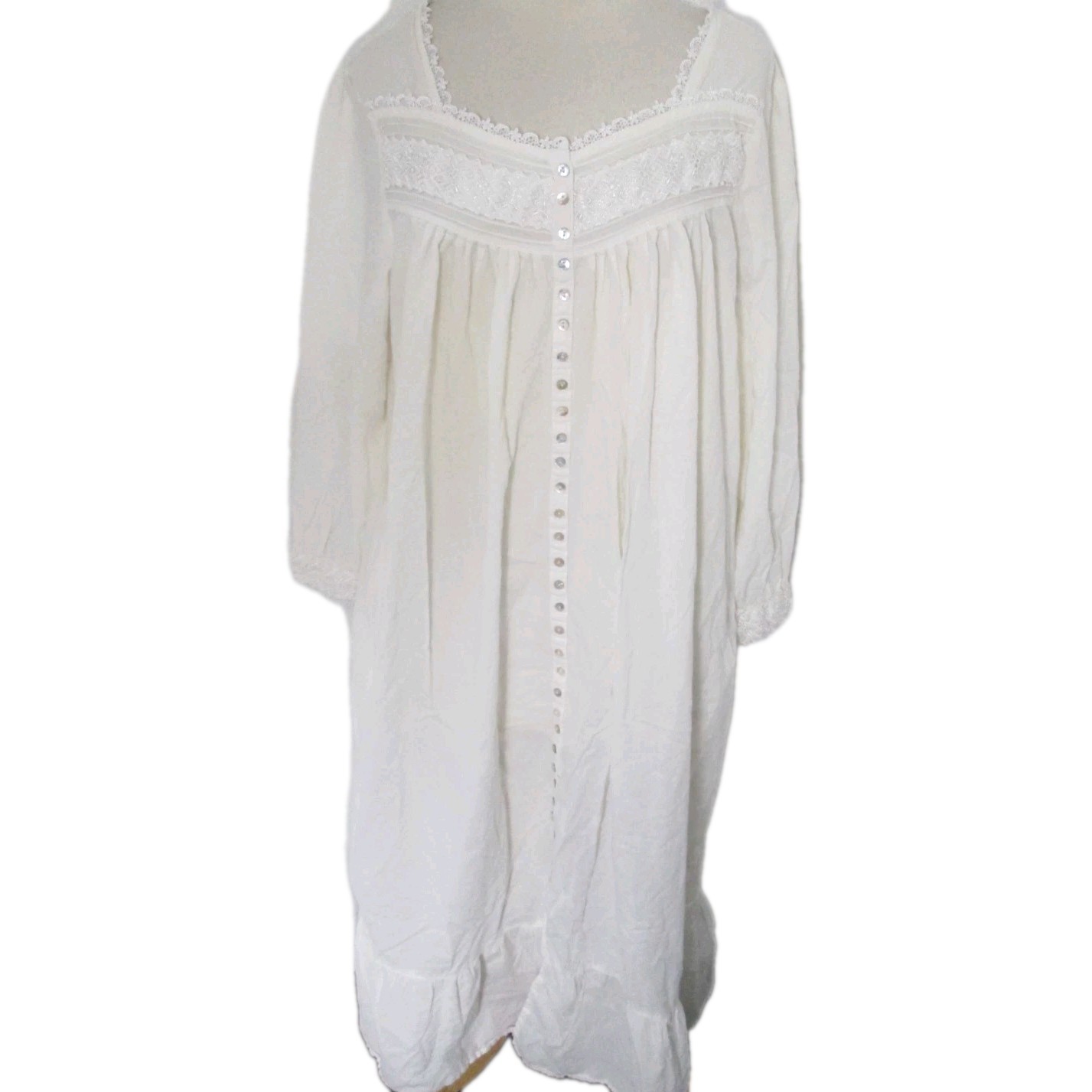 как выглядит Vintage Eileen West White Cotton Long Sleeve Ballet Prairie Nightgown Size Large фото
