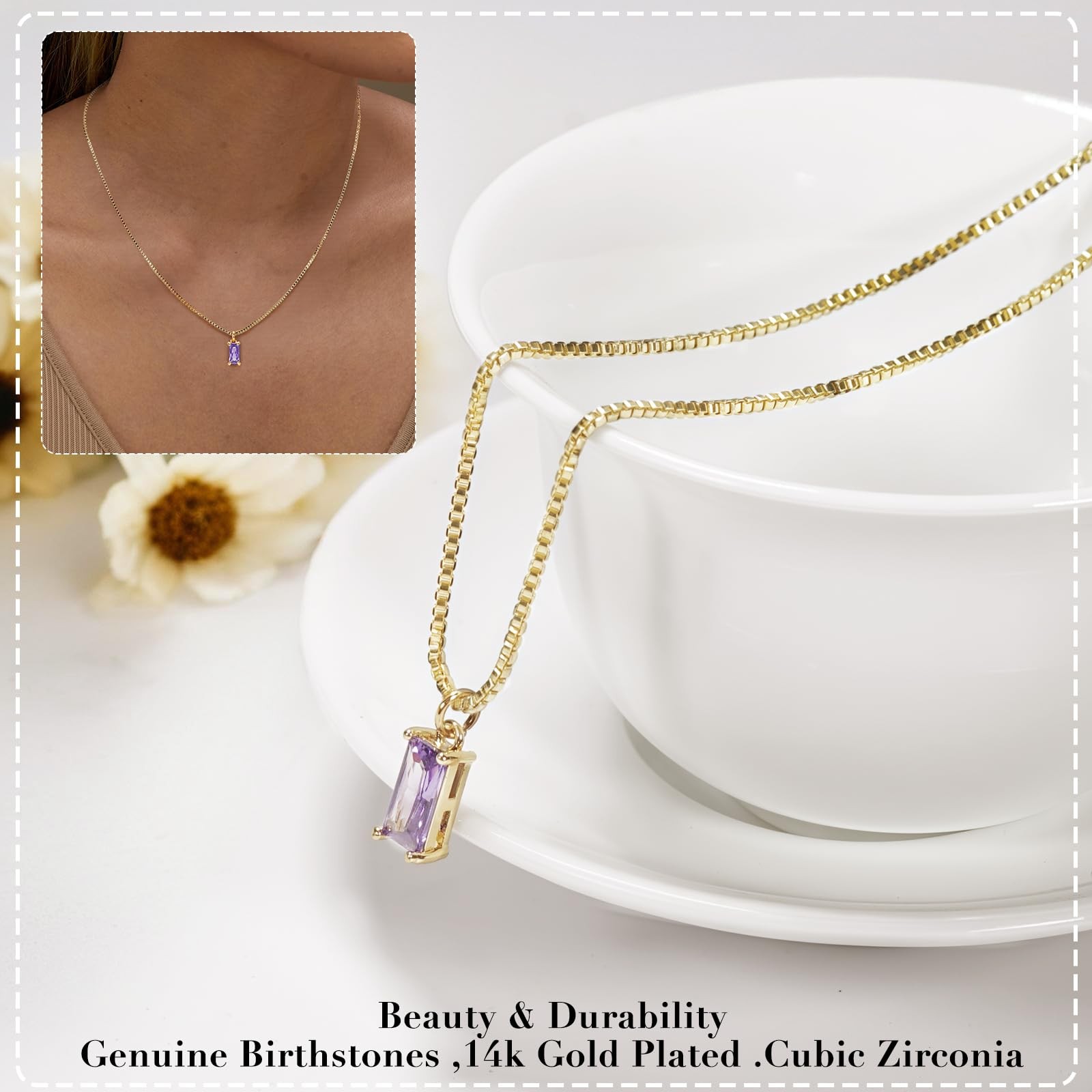 Freeunfet February Birthstone Necklace 14K Gold Plated One Size, Purple