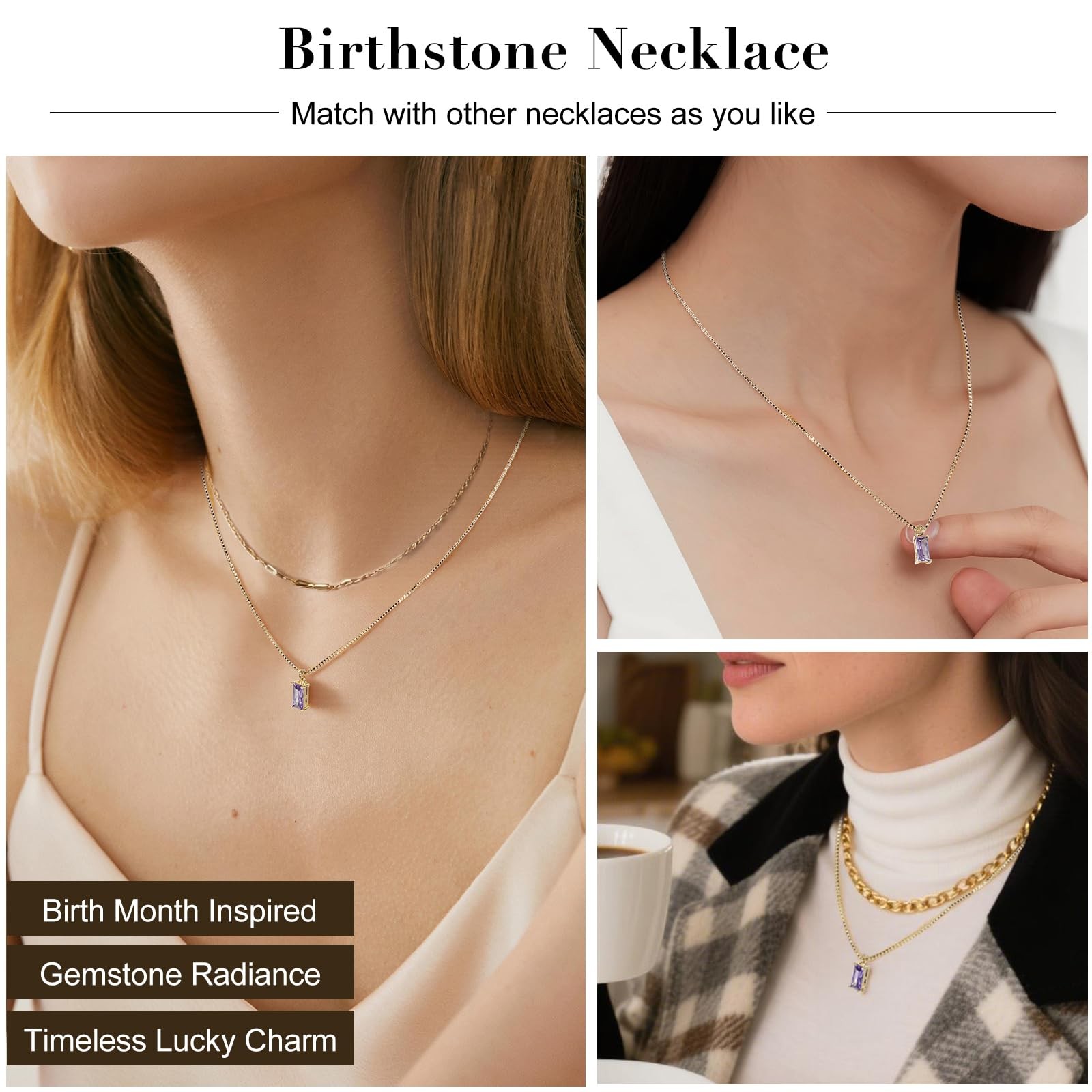 как выглядит Freeunfet February Birthstone Necklace 14K Gold Plated One Size, Purple фото