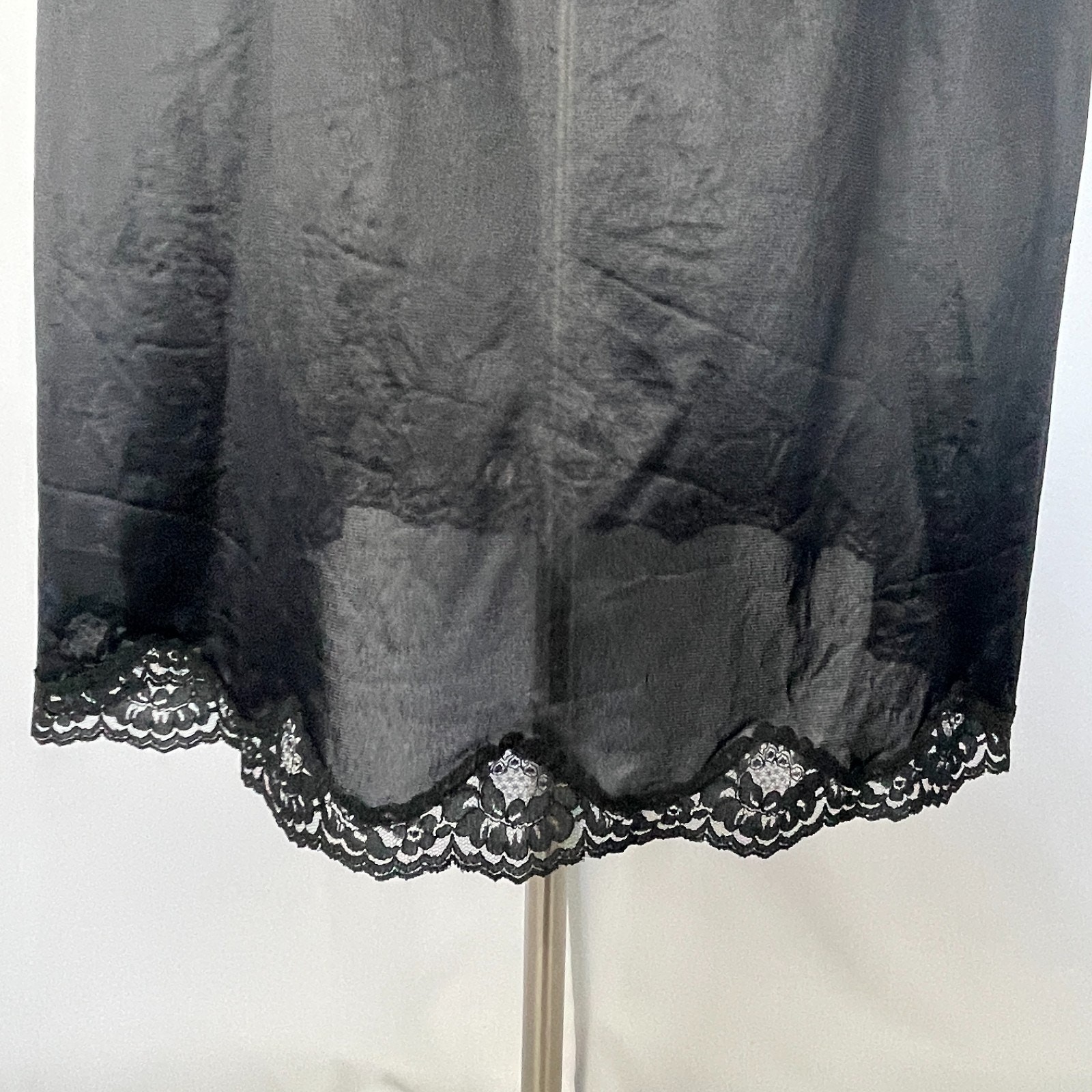 как выглядит Half Slip Skirt Plus Size 22 24 Black Solid Nylon Satin Lace Trim Lingerie Vtg фото