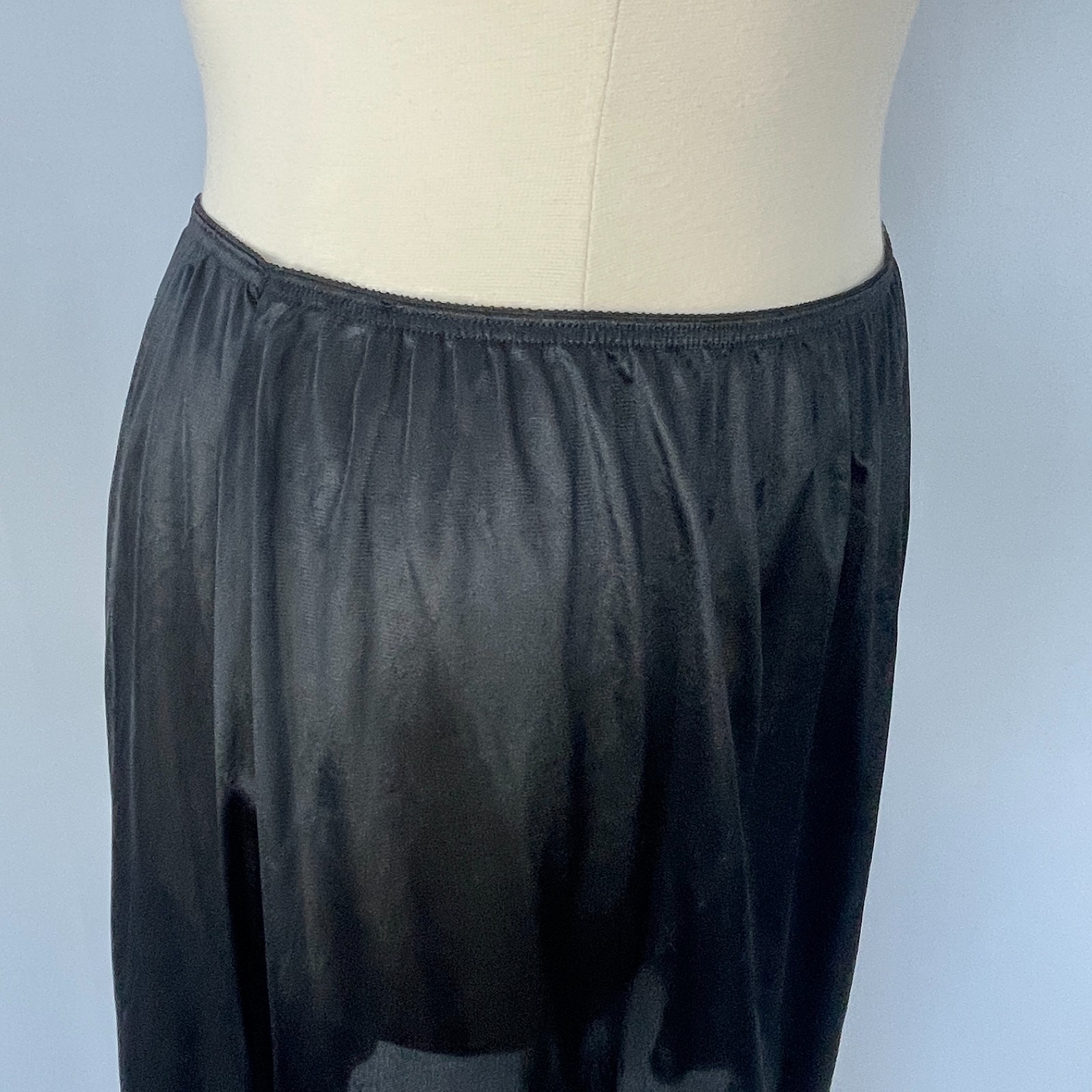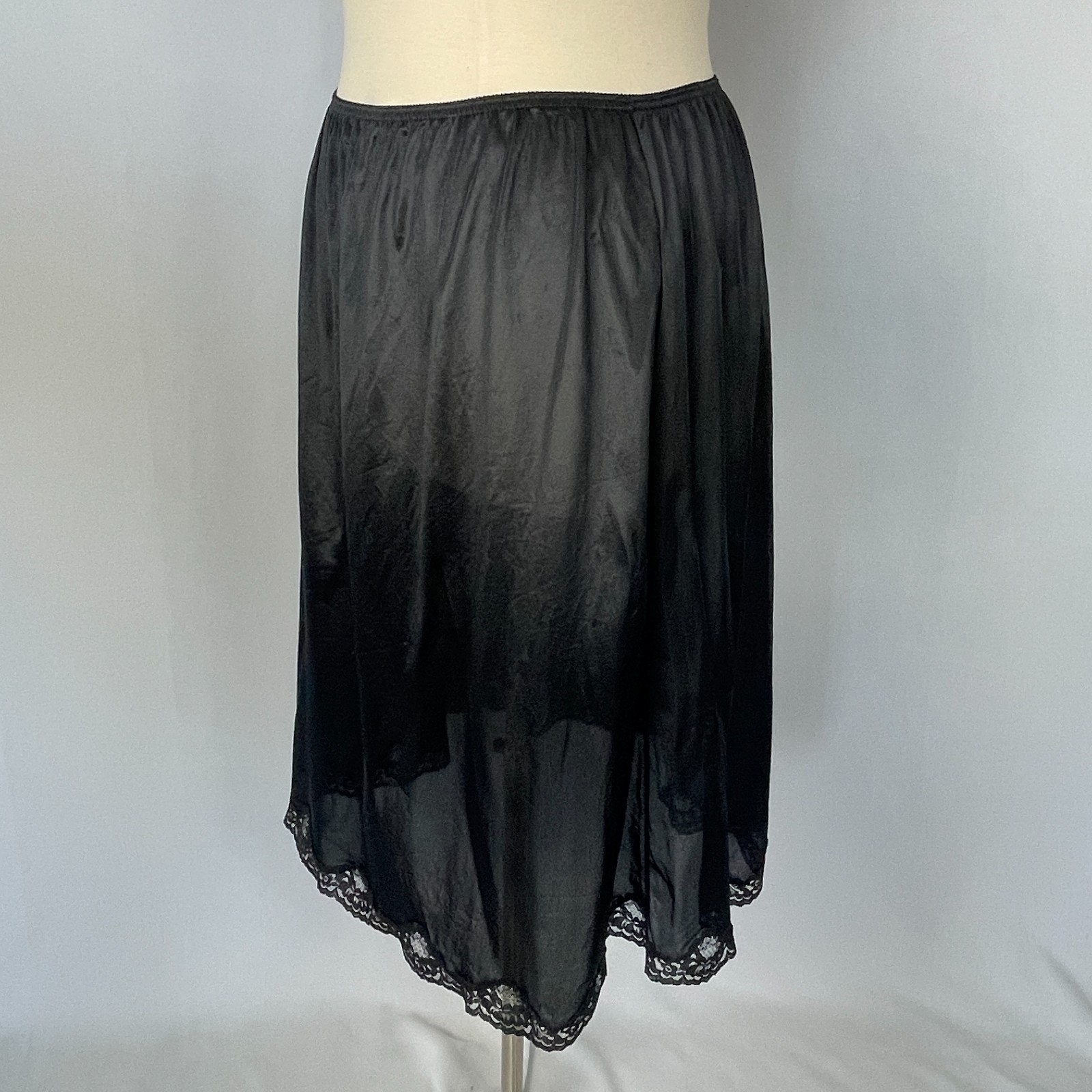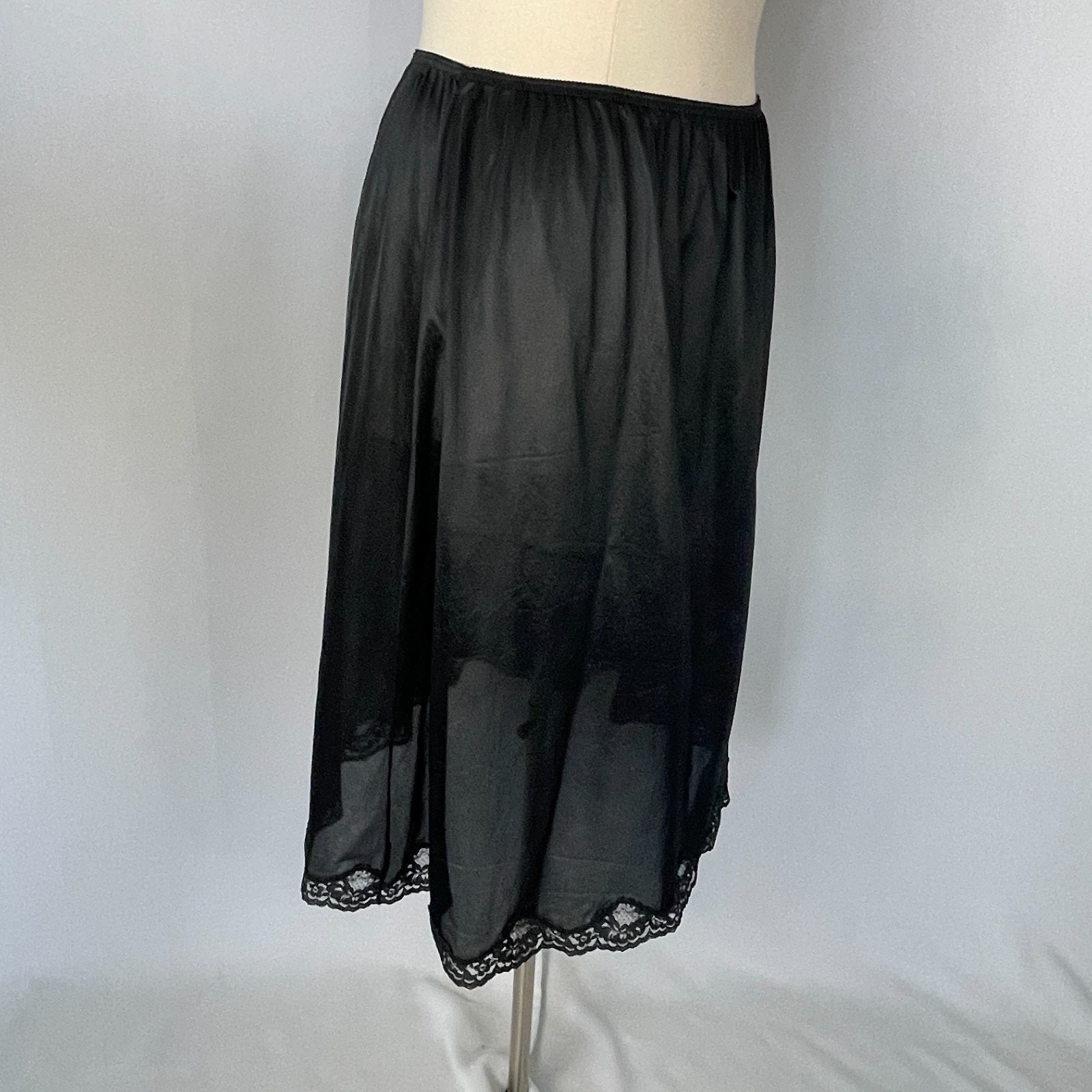 Half Slip Skirt Plus Size 22 24 Black Solid Nylon Satin Lace Trim Lingerie Vtg