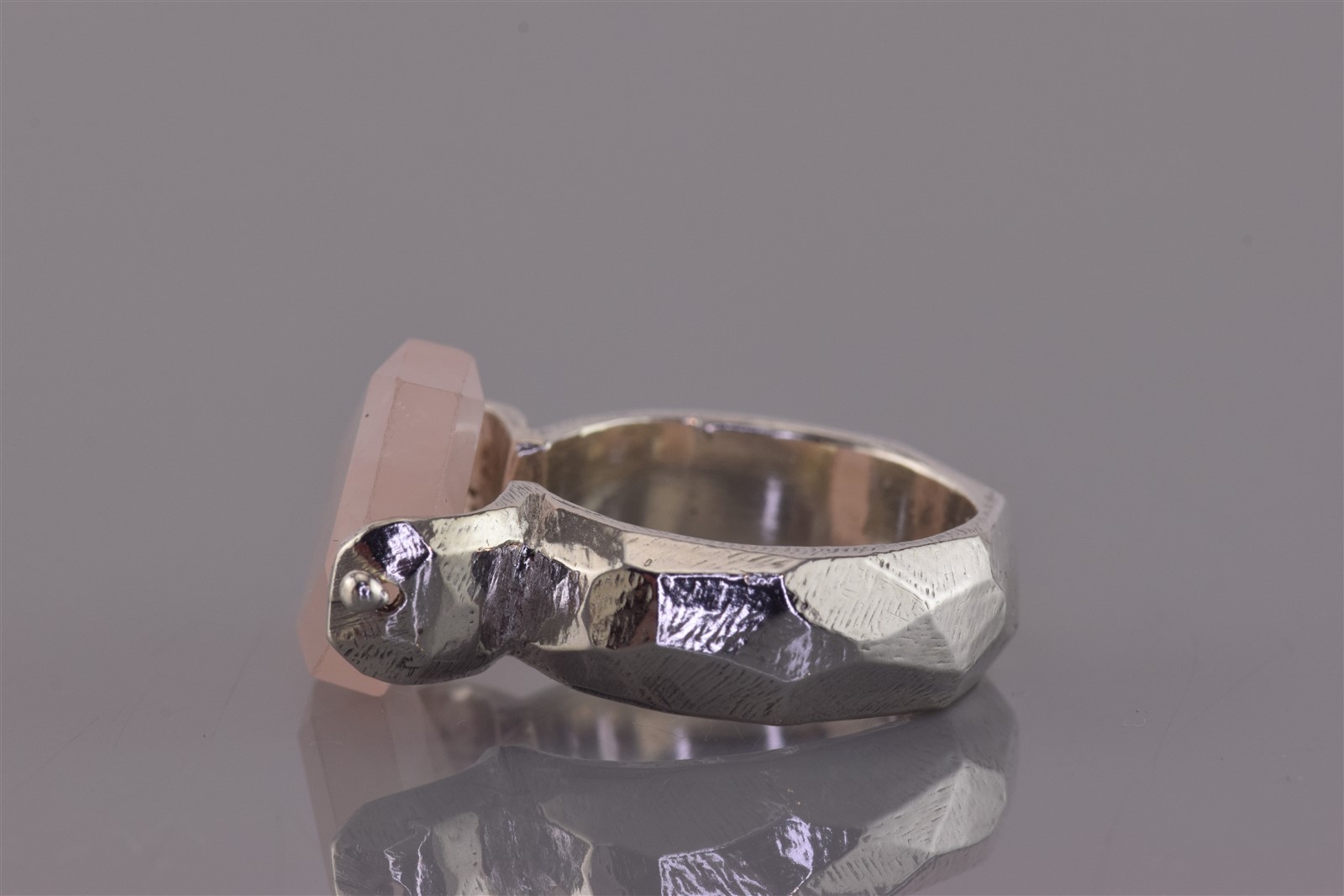 Sterling Silver Pink Rose Quartz Chunk Solid Hex Pattern Band Ring 13g 925 Sz: 7