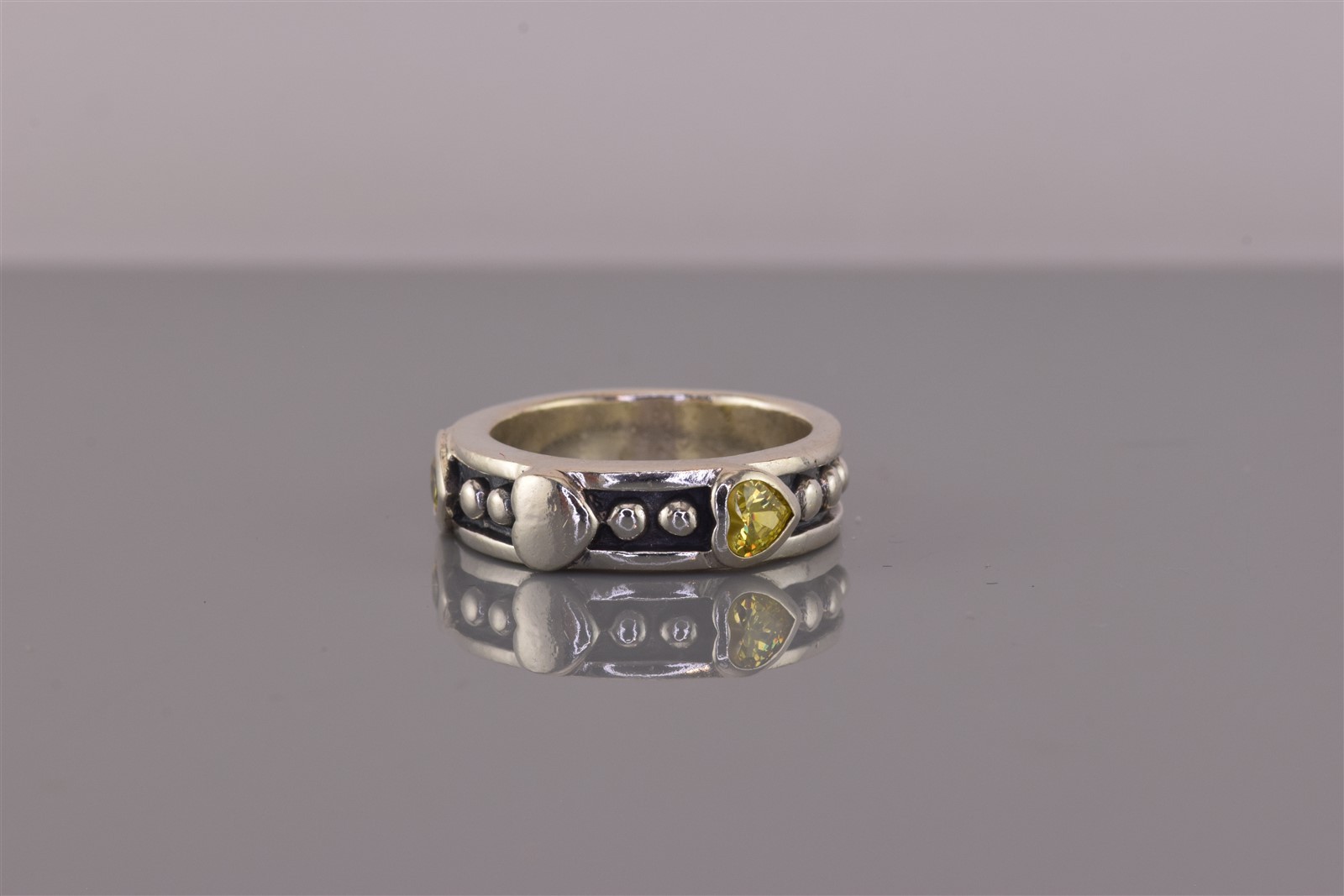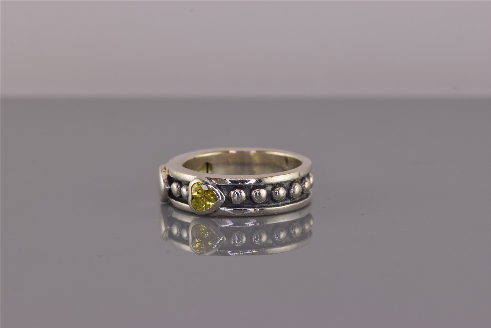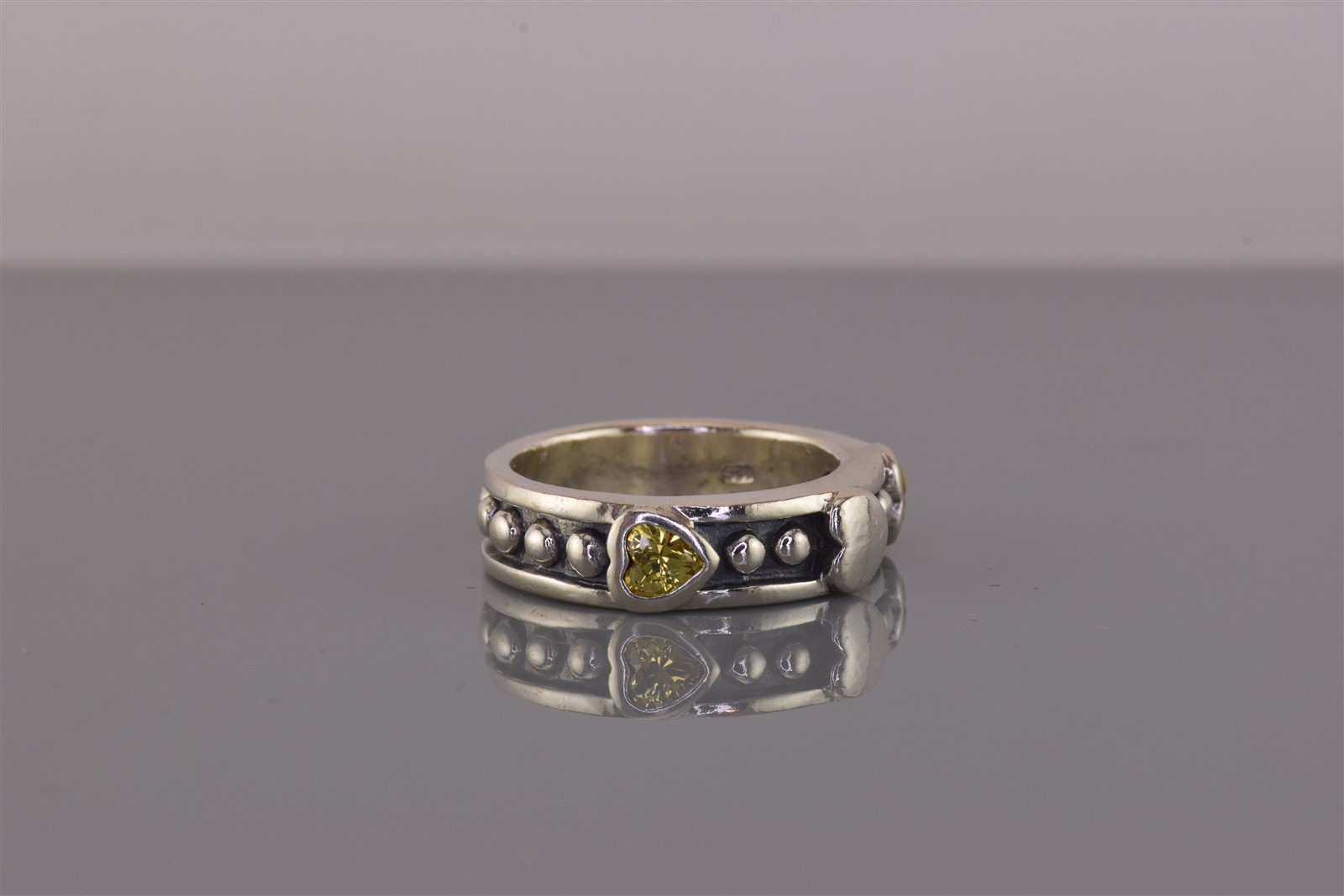 как выглядит Sterling Silver Yellow Cubic Zirconia Heart Dotted Solid Band Ring 925 Sz: 7 фото