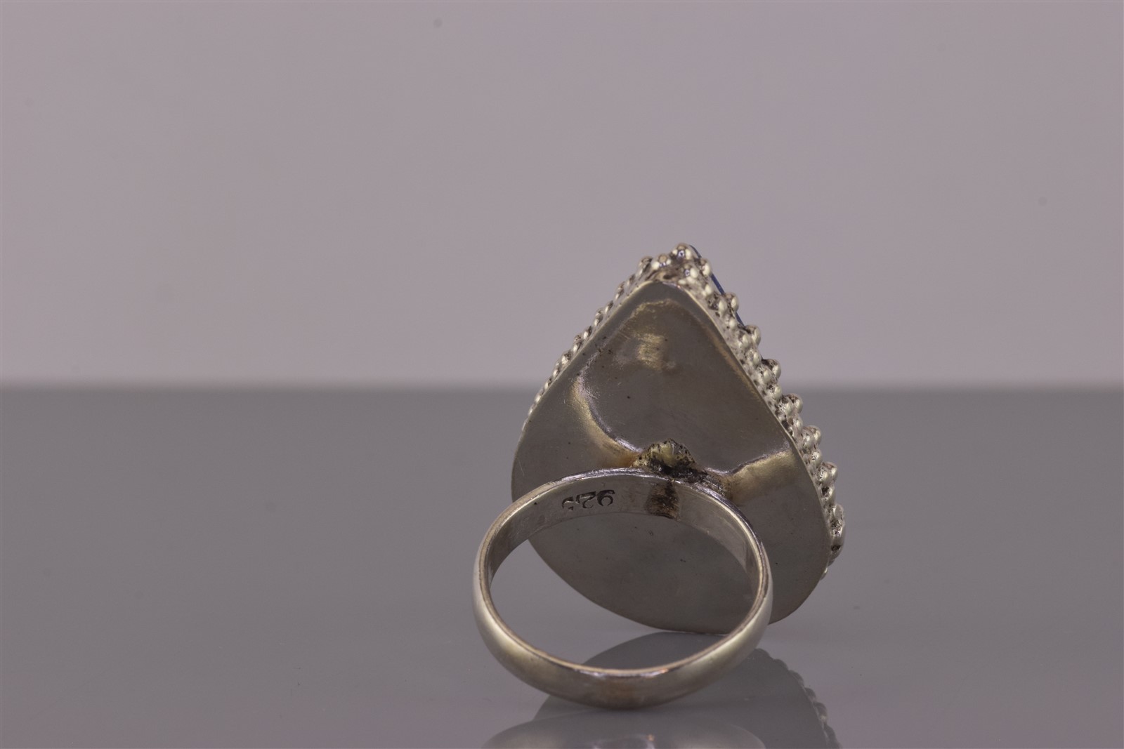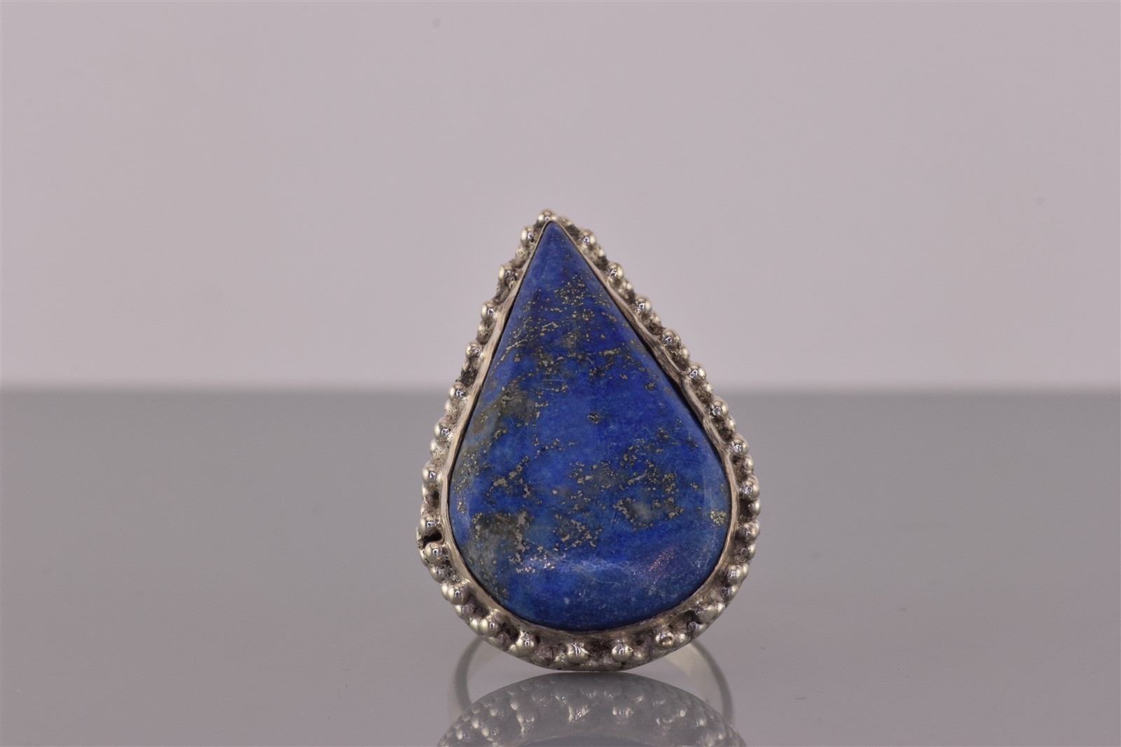 как выглядит Sterling Silver 32mm Beaded Trim Pear Blue Lapis Statement Band Ring 925 Sz: 7 фото
