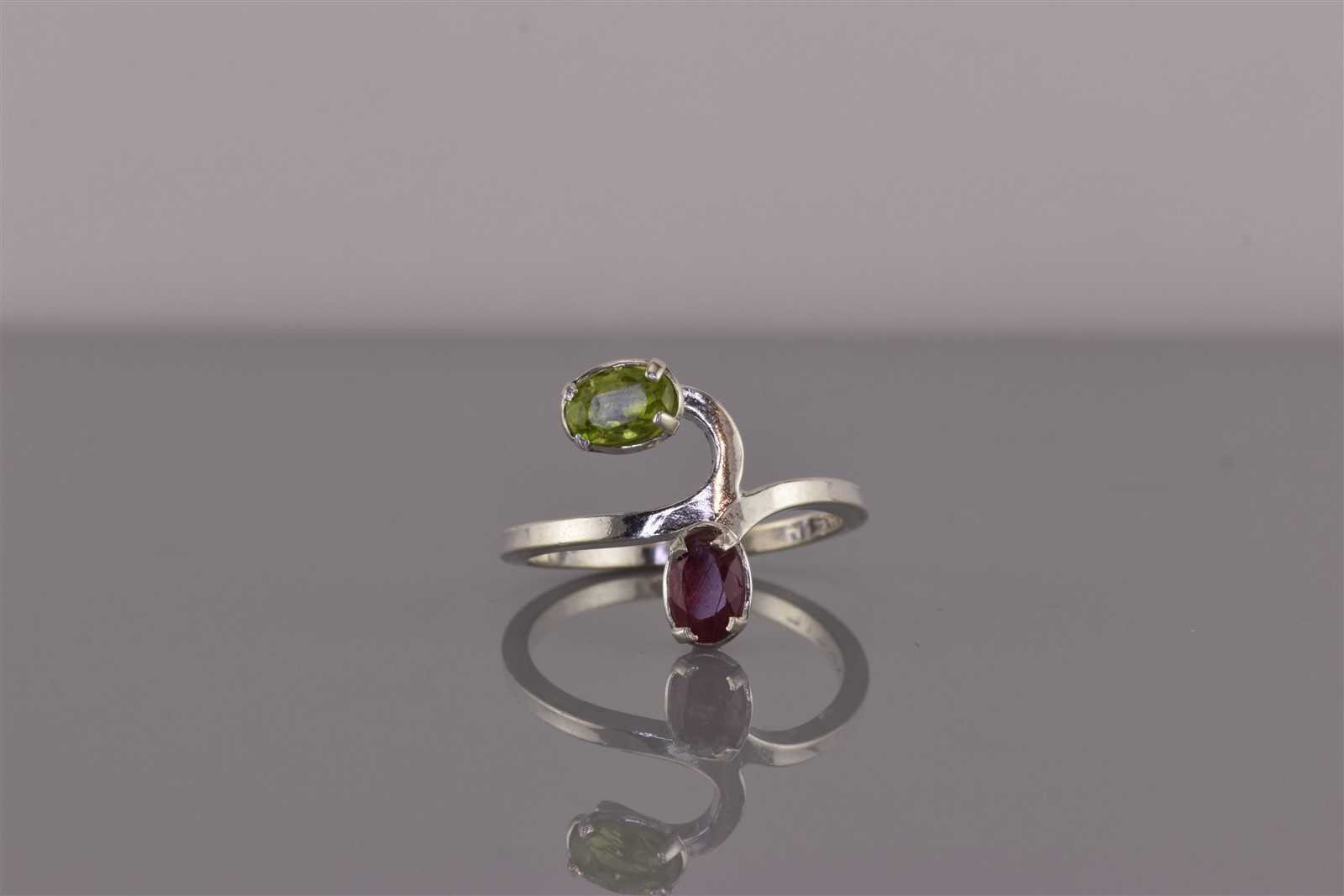 как выглядит Sterling Silver Oval Green Peridot Amethyst Swirled Band Ring Brazil 925 Sz: 7 фото