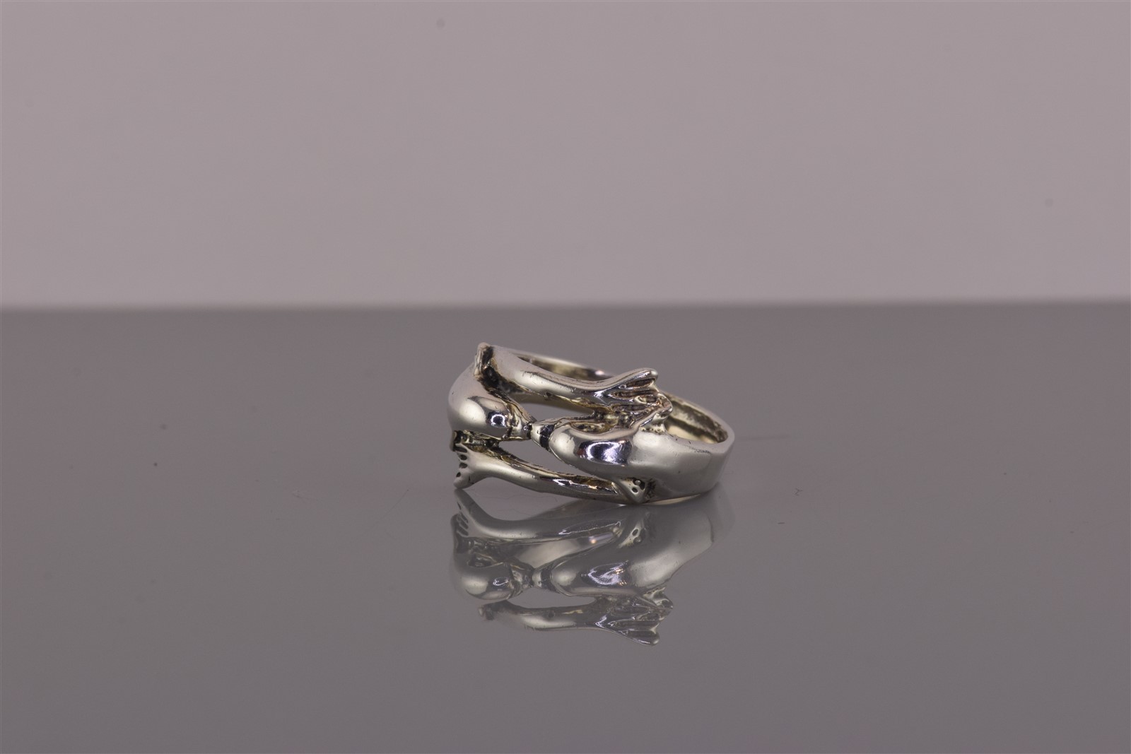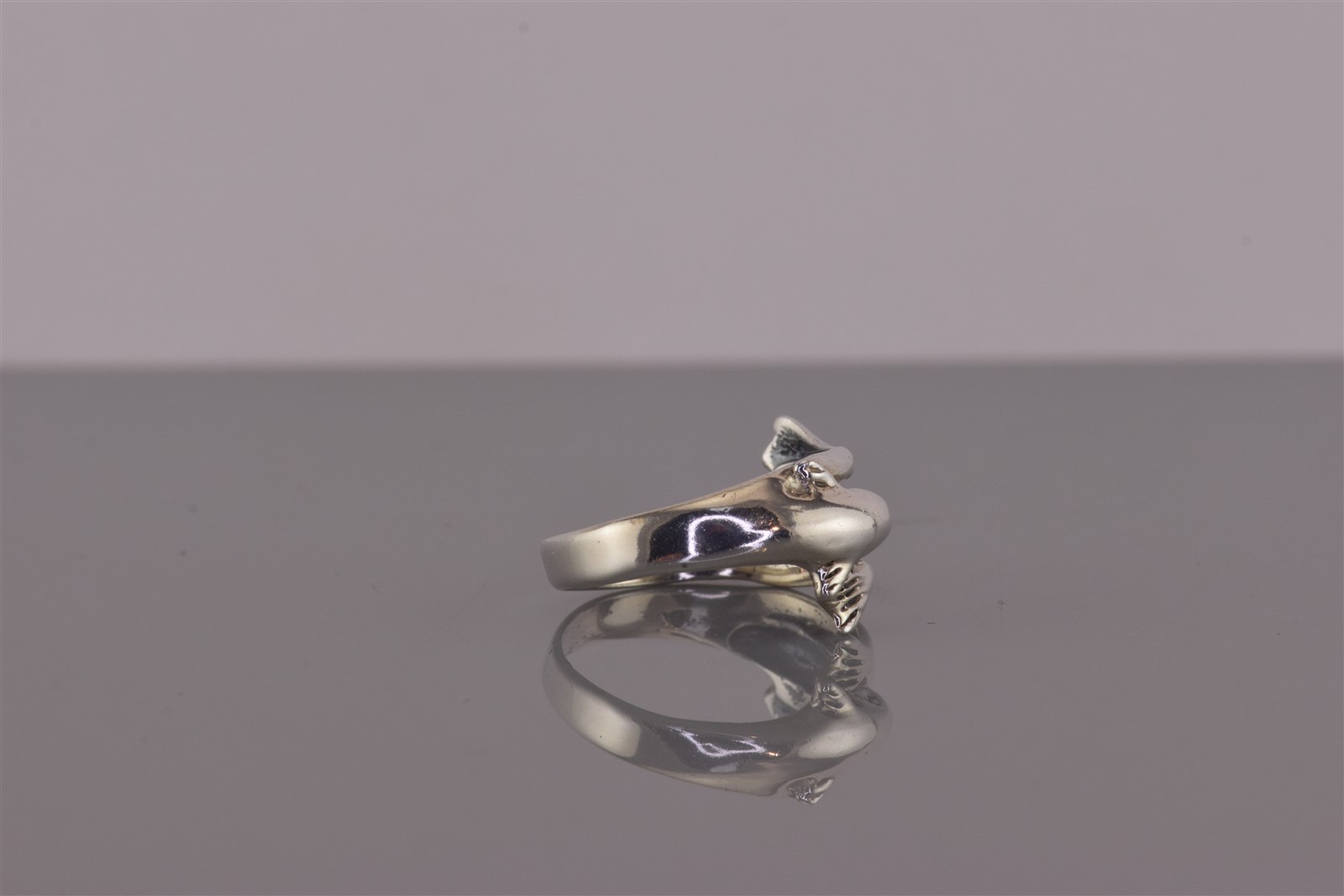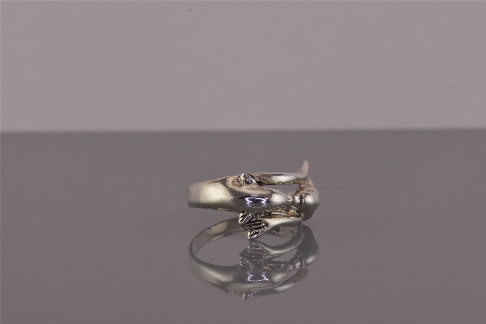 как выглядит Sterling Silver Kissing Double Dolphins Wrap Around Band Ring 925 Sz: 7 фото