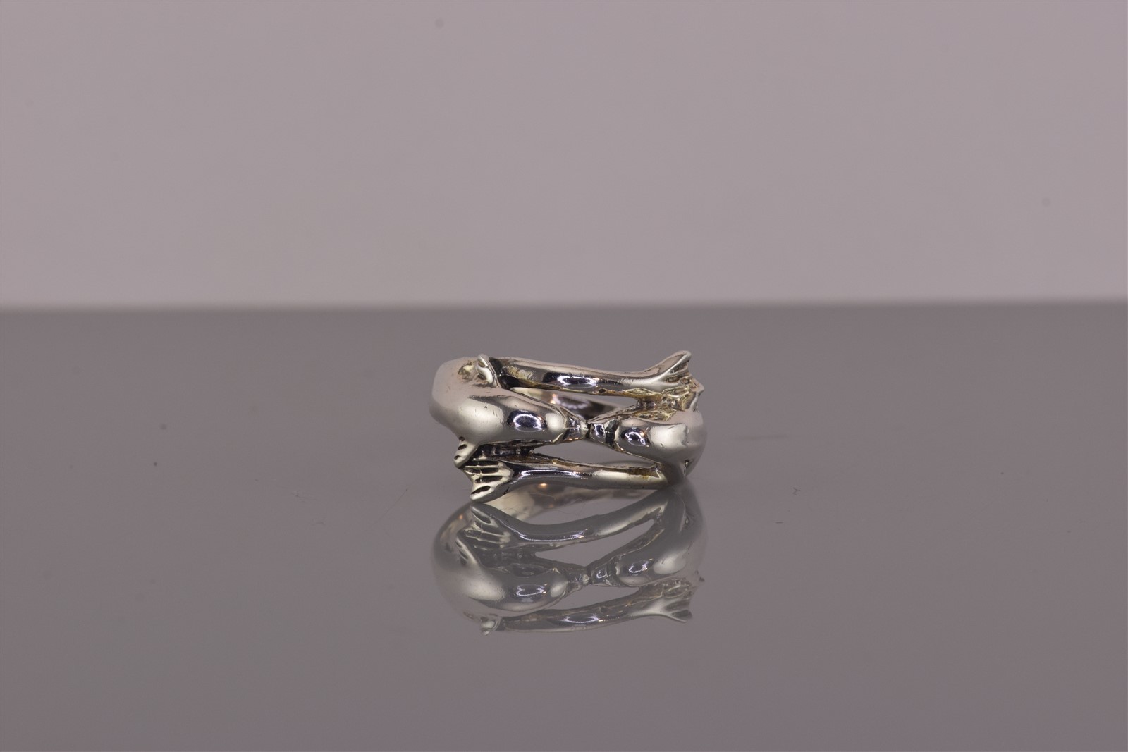 Sterling Silver Kissing Double Dolphins Wrap Around Band Ring 925 Sz: 7